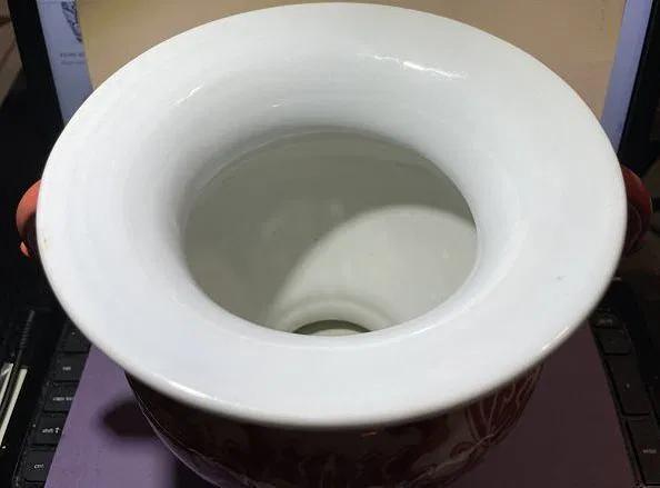 Vintage Asian Hand Painted Porcelain Double Handled Coral Colored 8" Tall Heavy Vase Preowned from an Estate in Good Condition.