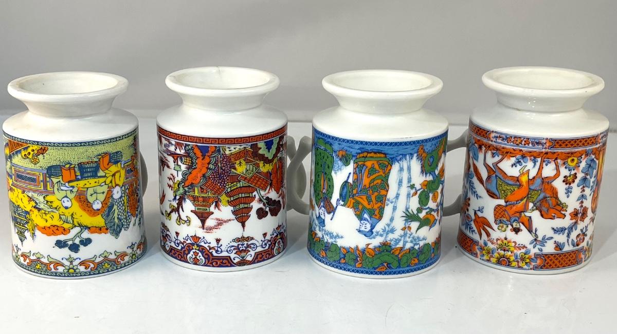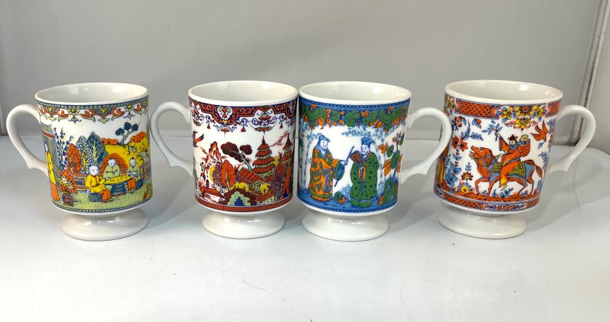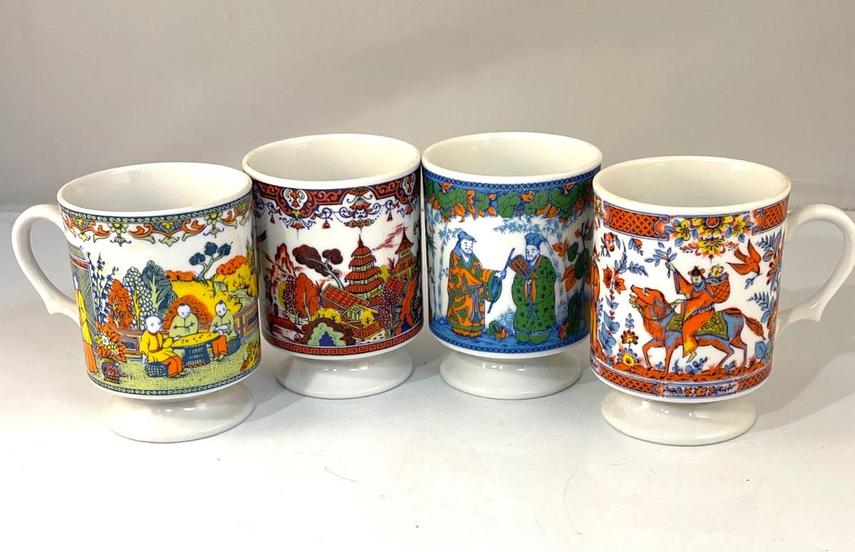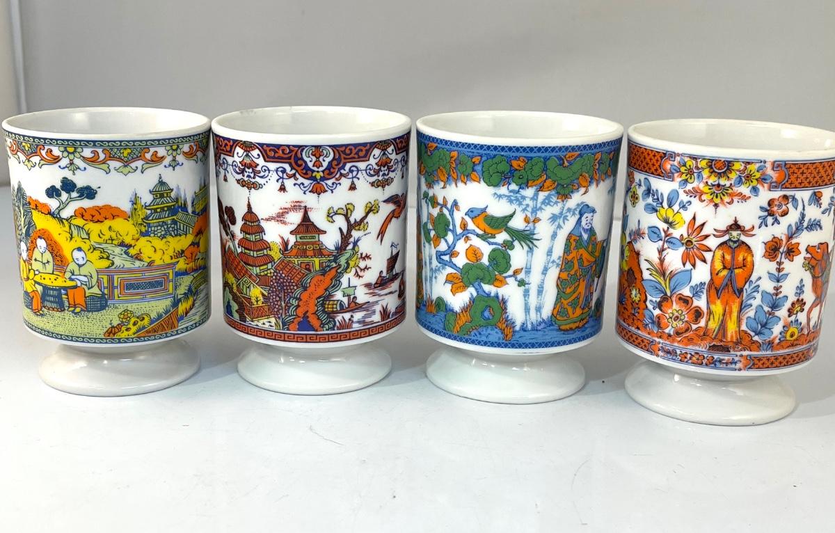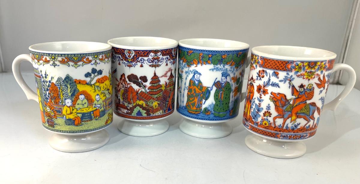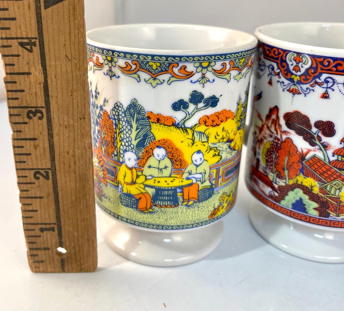 Vintage Asian Oriental Pedestal Coffee Cup Mug Set