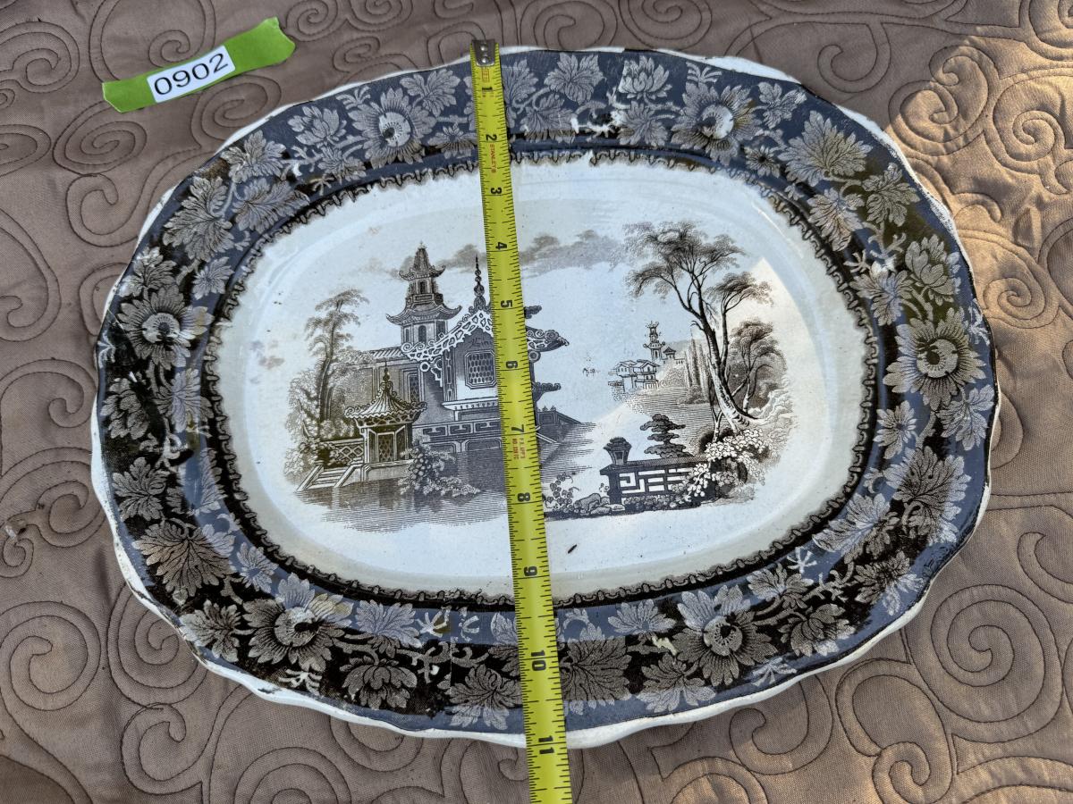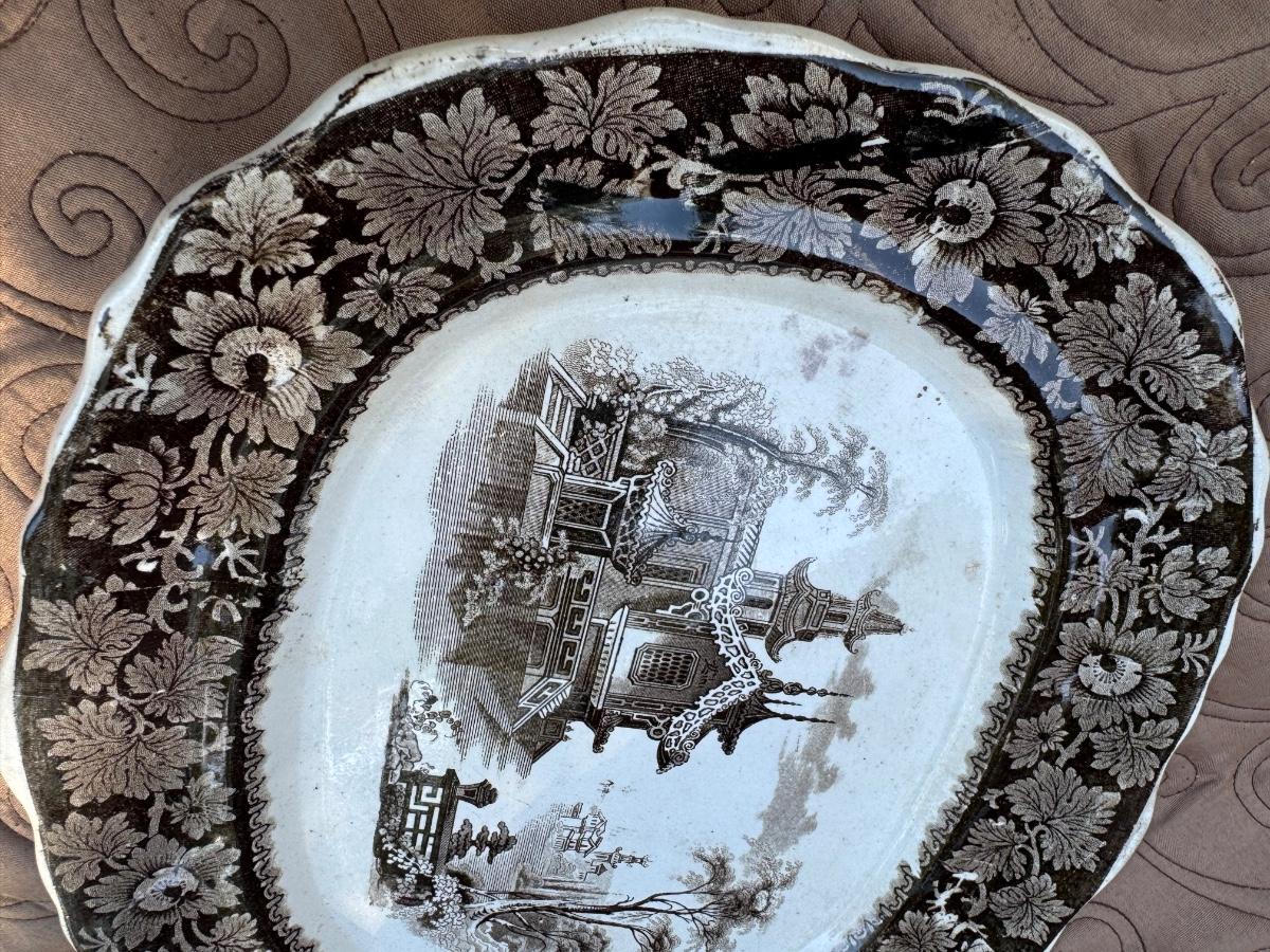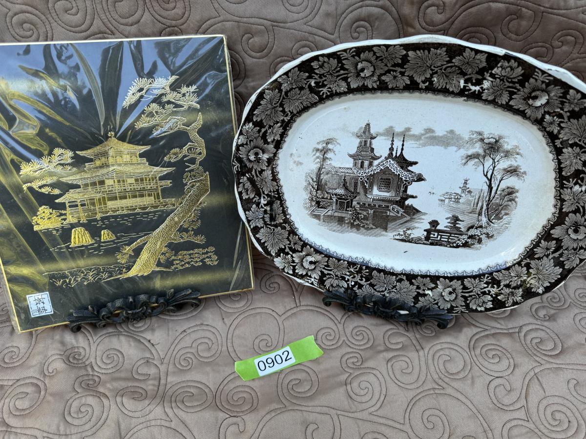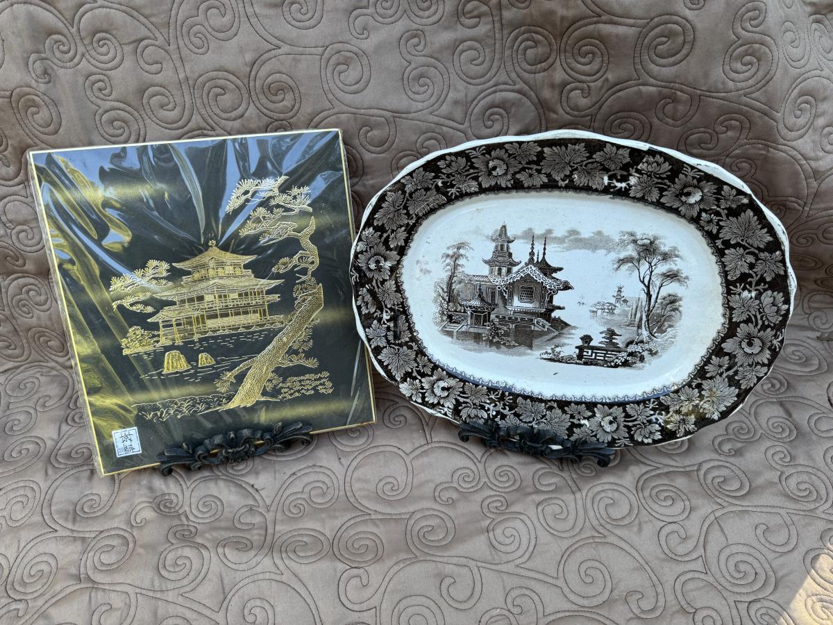 Vintage Asian Serving Tray/Plate & Foil Decor