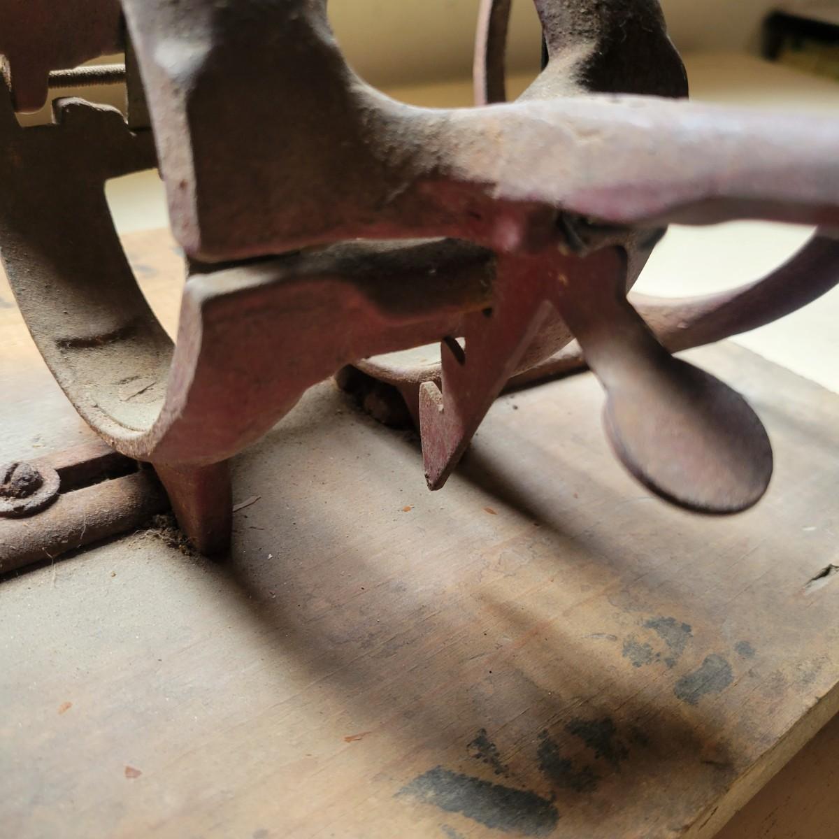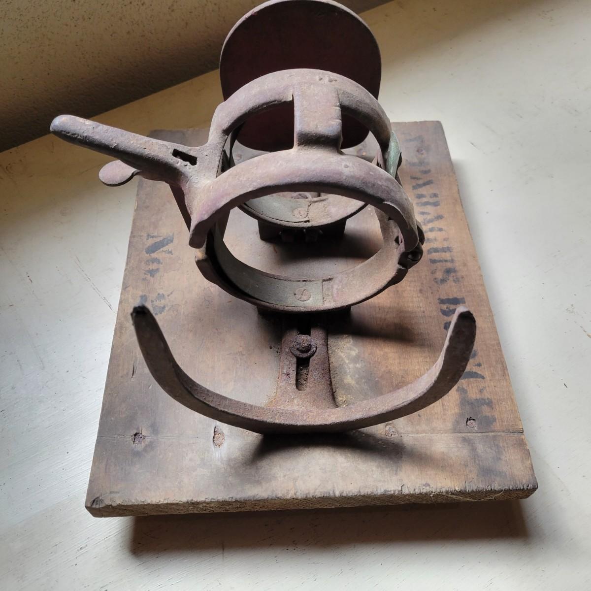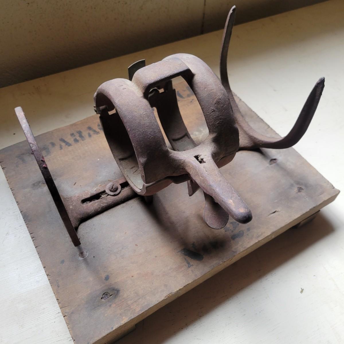 An antique The Philadelphia Buncher asparagus buncher. Item appears to be cast iron attached to wood. Wood is marked "Asparagus Buncher No. 2". It measures approximately 12" x 9.5" x 7". Buncher is mostly in good condition but has some rust and dust apparent. Shipping available.