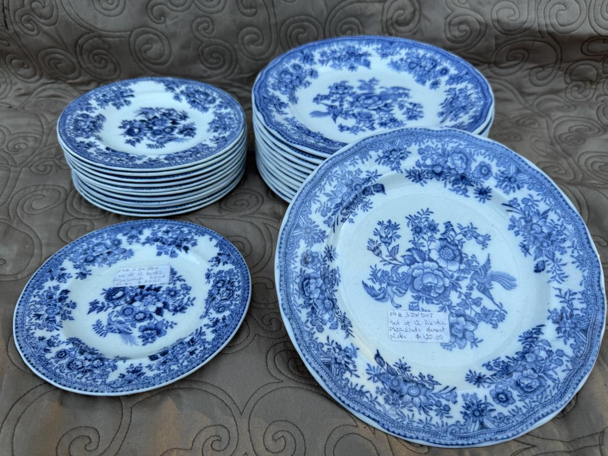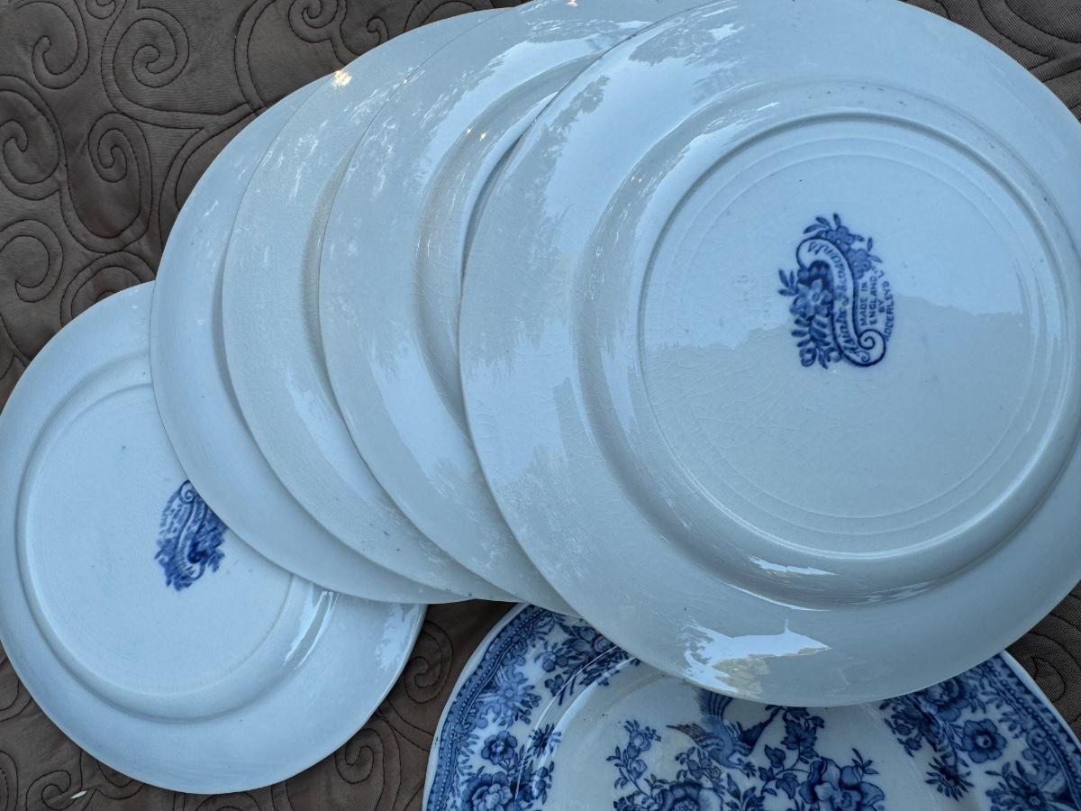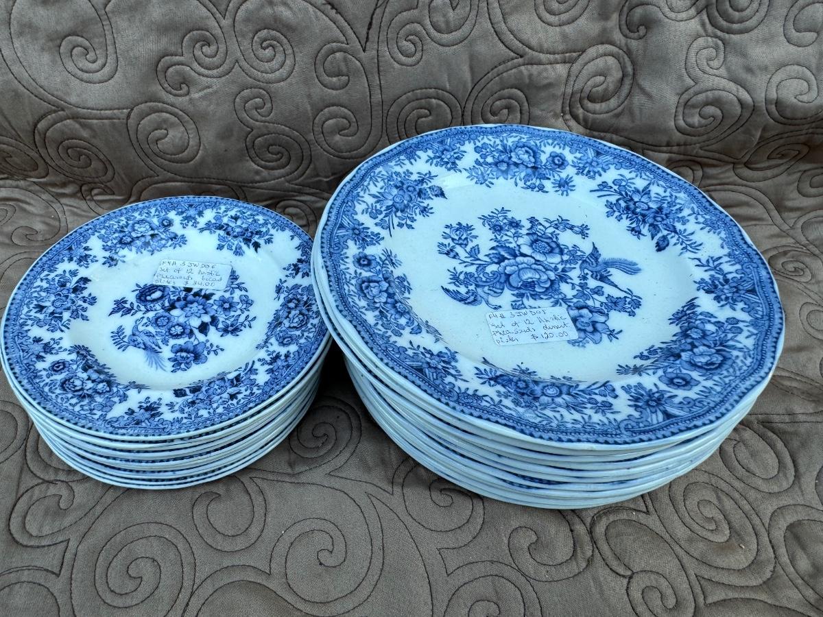 Vintage Blue Asiatic Pheasants Plates - Made in England (24 Total)