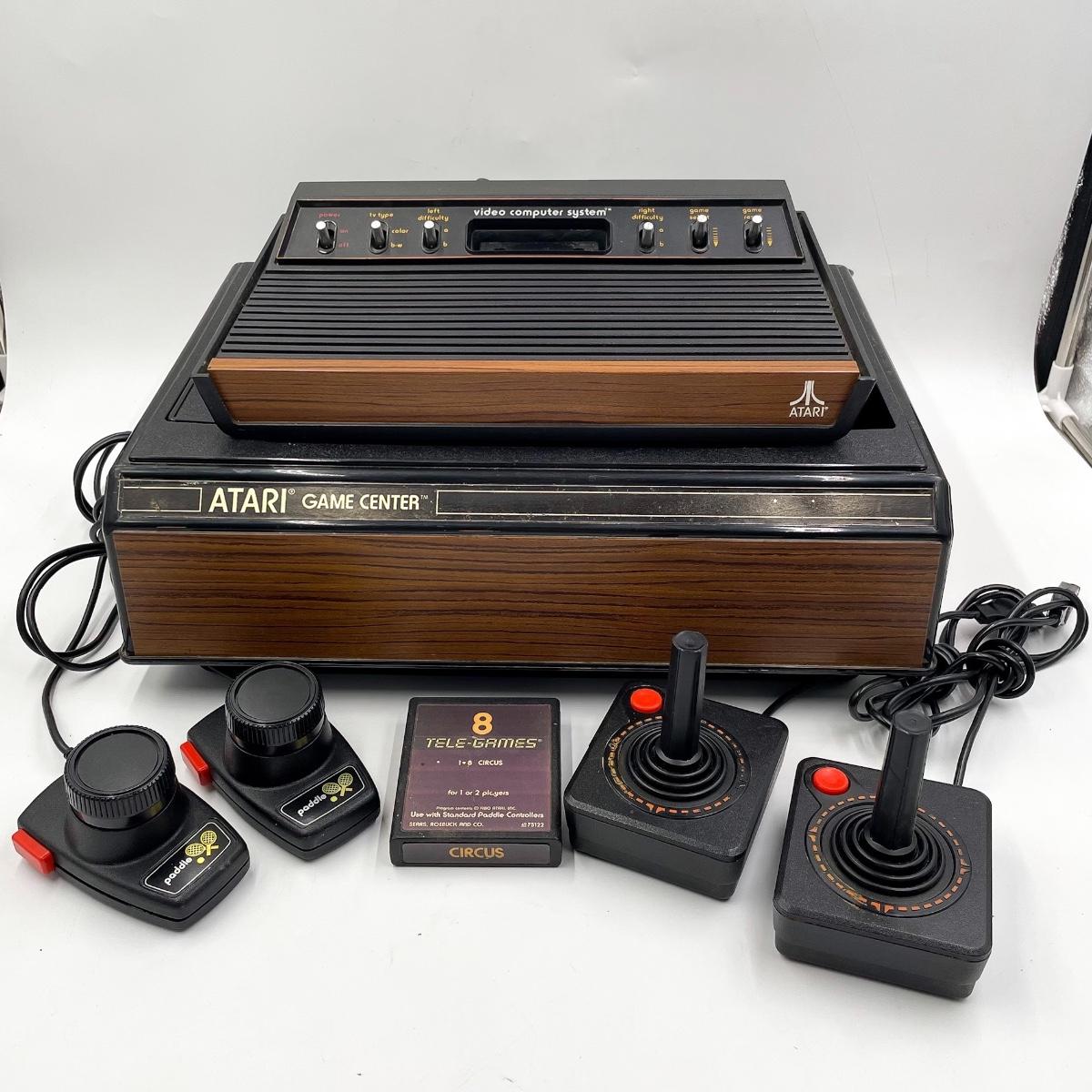VINTAGE ATARI GAMING SYSTEM CX-2600, GAME CENTER, CONTROLLERS AND GAME