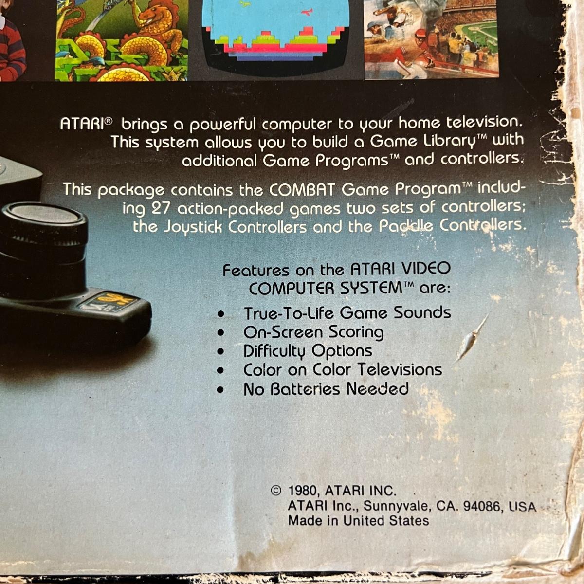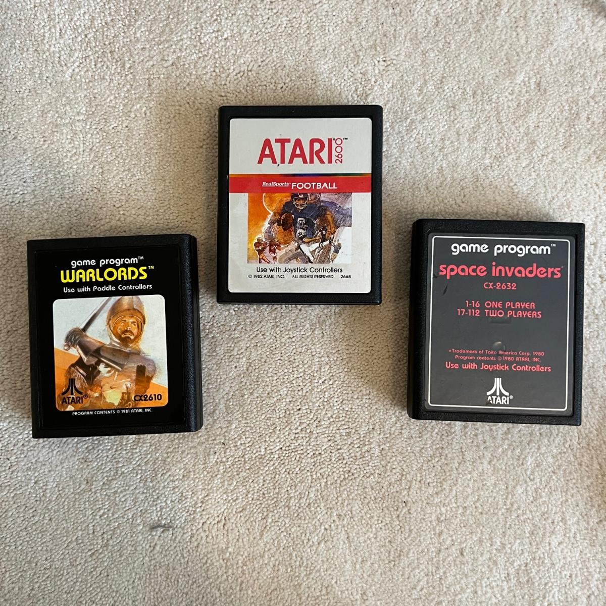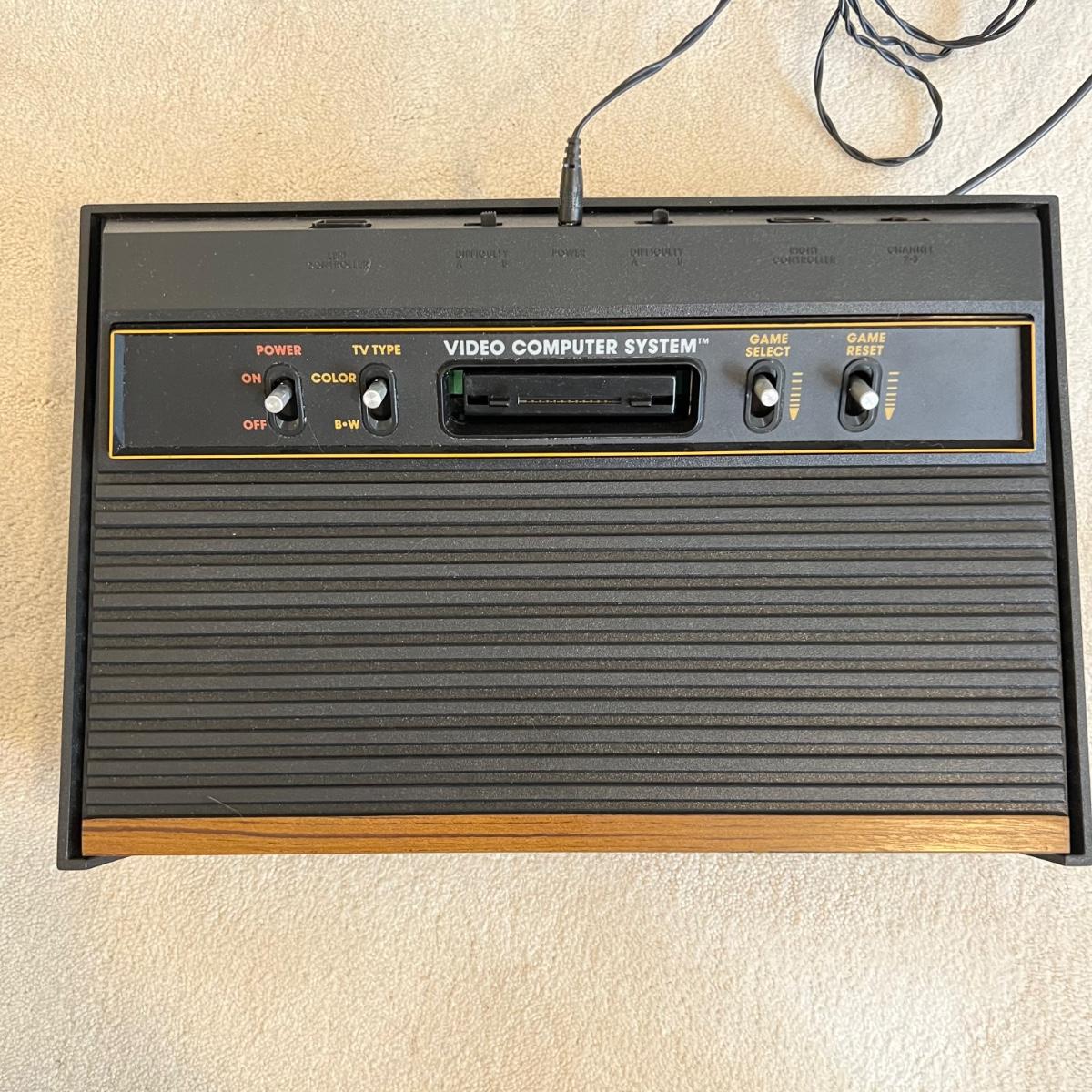 Atari model no. CX-2600A Video Computer System. Package includes the unit itself, two paddle controllers, two joystick controllers. Also includes three games: Space Invaders (played with joystick controller), Atari 2600 Real Sports Football (played with joystick controller) and Game Program Warlords (played with paddle controllers). Unit power cord available and was plugged in, but unable to verify operability because there is no indicator that power is on (light) and unit was not tested with a television. Shipping available. Shipping can be costly. We suggest calling our local UPS store and getting a quote before bidding: (828) 252-6930.