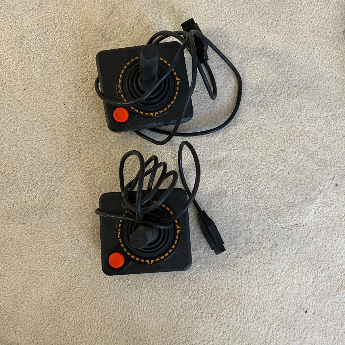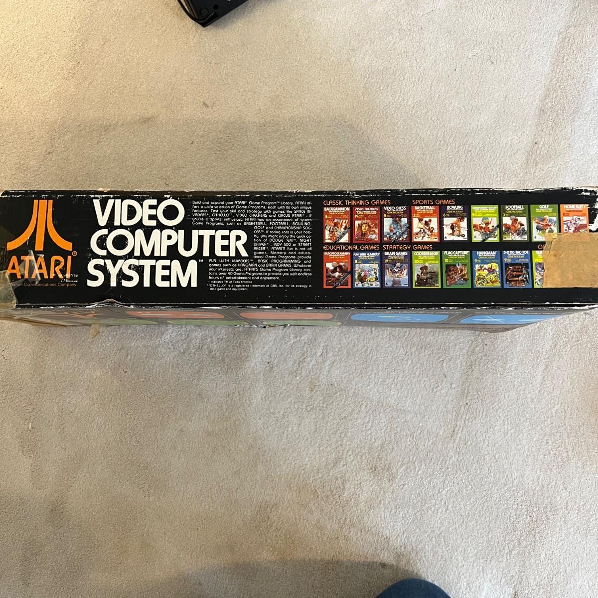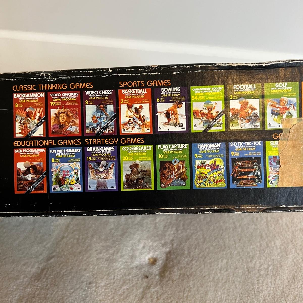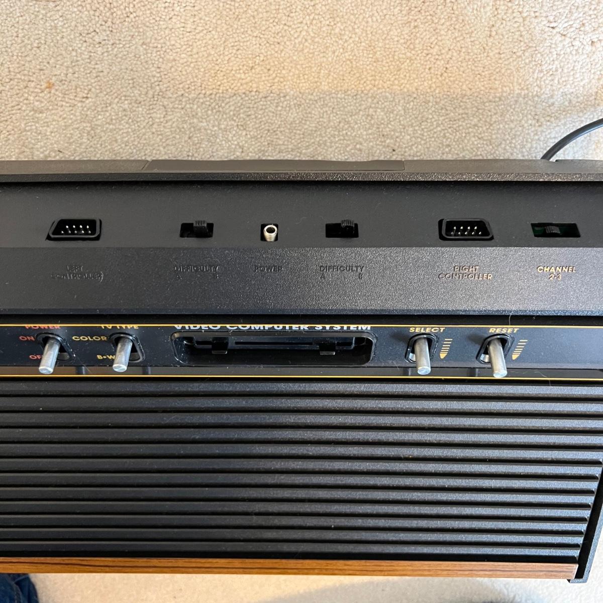 Atari model no. CX-2600A Video Computer System. Package includes the unit itself, two paddle controllers, two joystick controllers. Also includes three games: Space Invaders (played with joystick controller), Atari 2600 Real Sports Football (played with joystick controller) and Game Program Warlords (played with paddle controllers). Unit power cord available and was plugged in, but unable to verify operability because there is no indicator that power is on (light) and unit was not tested with a television. Shipping available. Shipping can be costly. We suggest calling our local UPS store and getting a quote before bidding: (828) 252-6930.