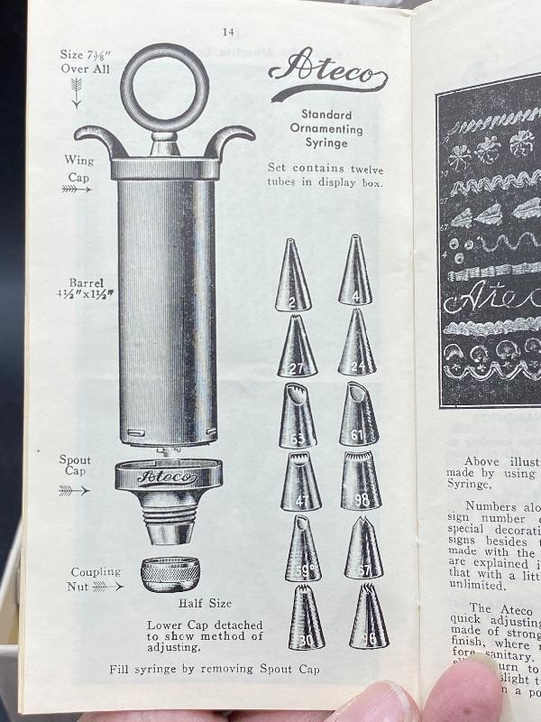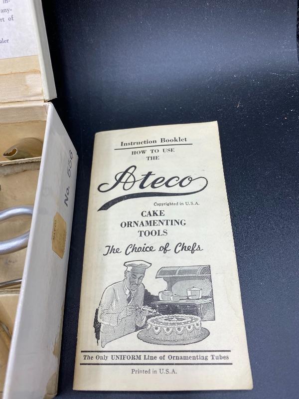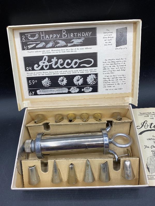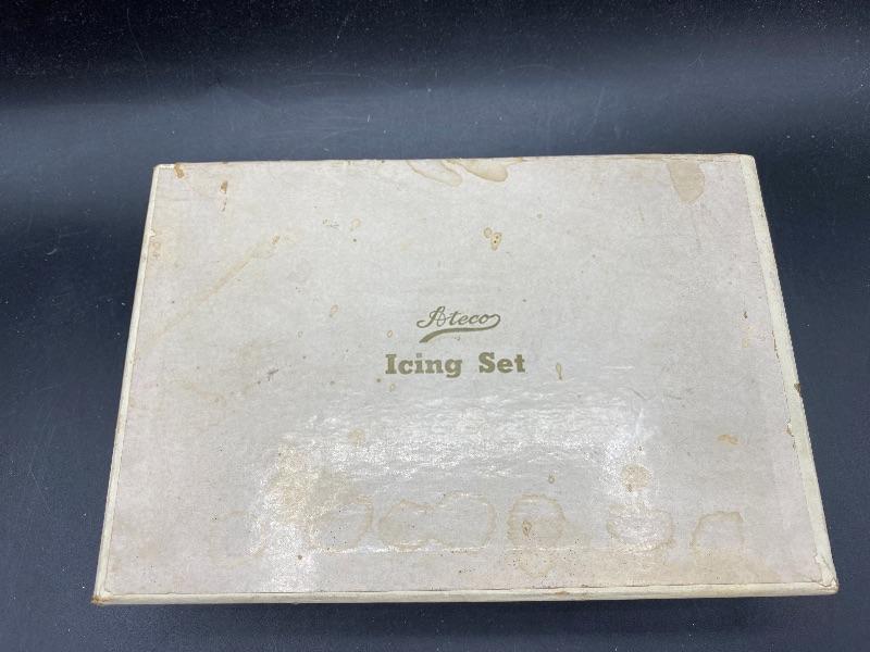 Vintage Ateco icing set. Boxed set comes with booklet. Looks to be in good previously used condition. Complete tip set.