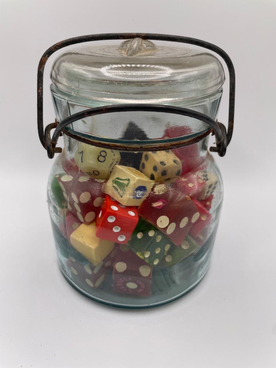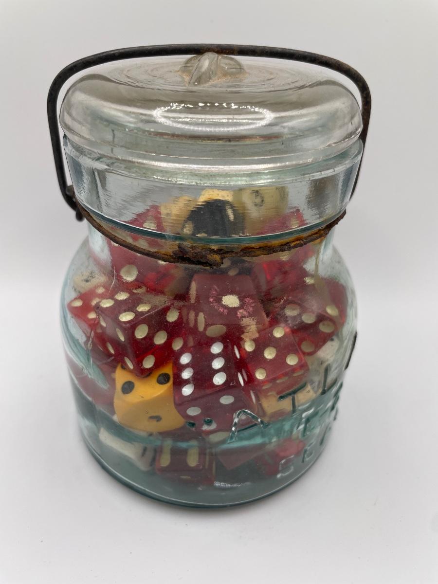 Vintage Atlas jar with dice