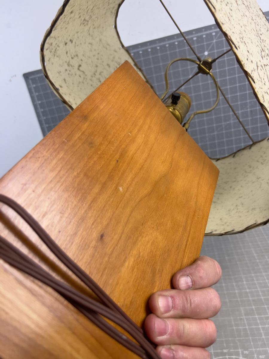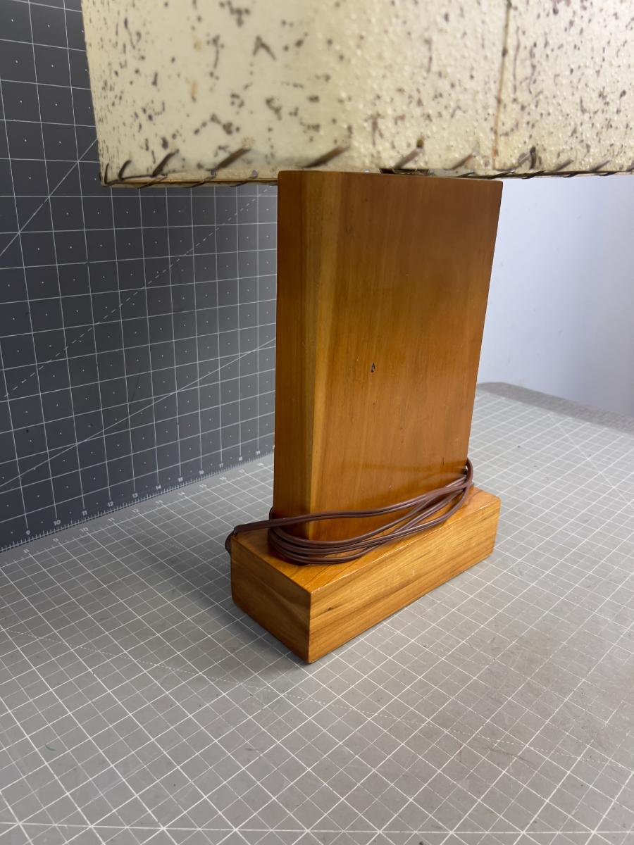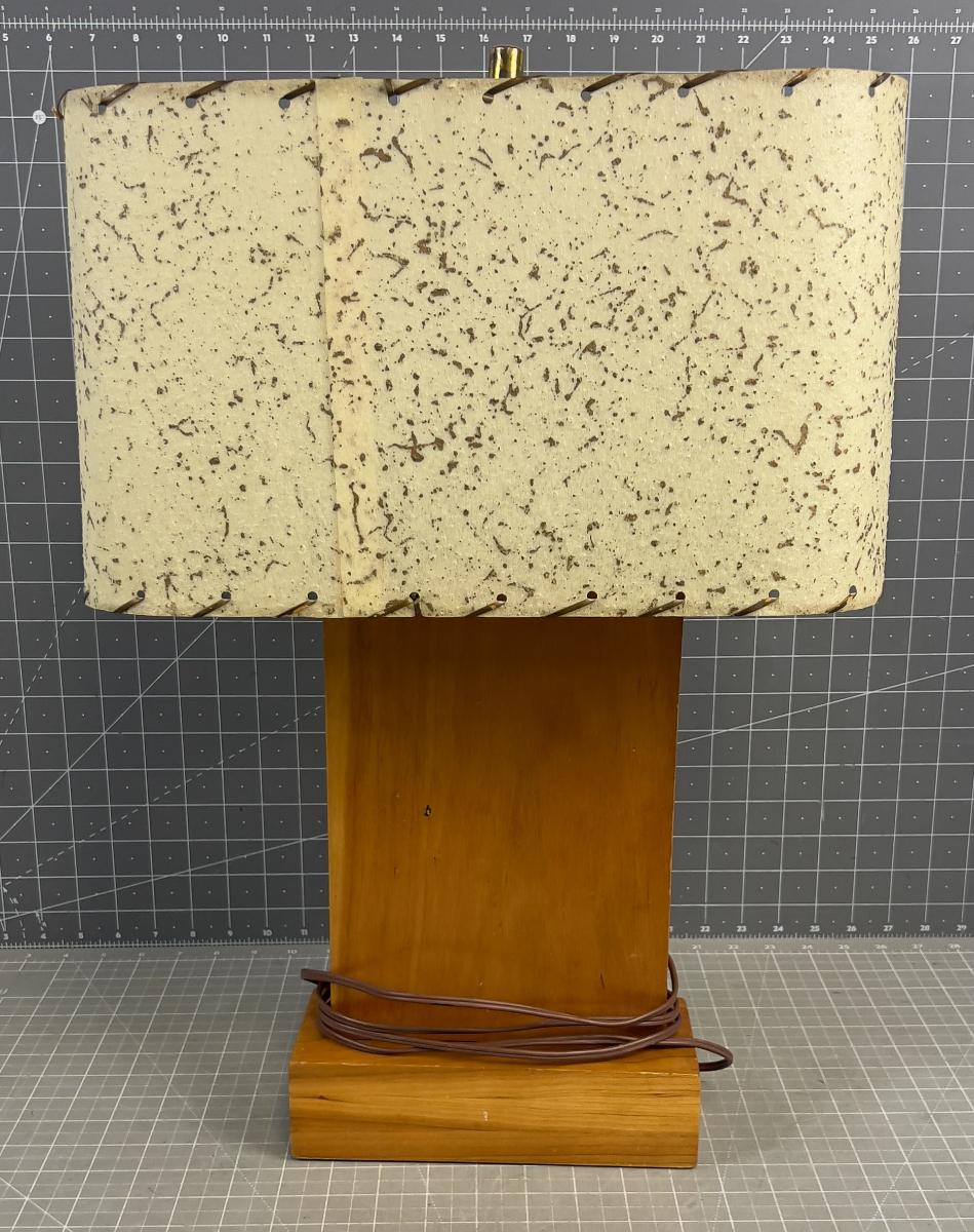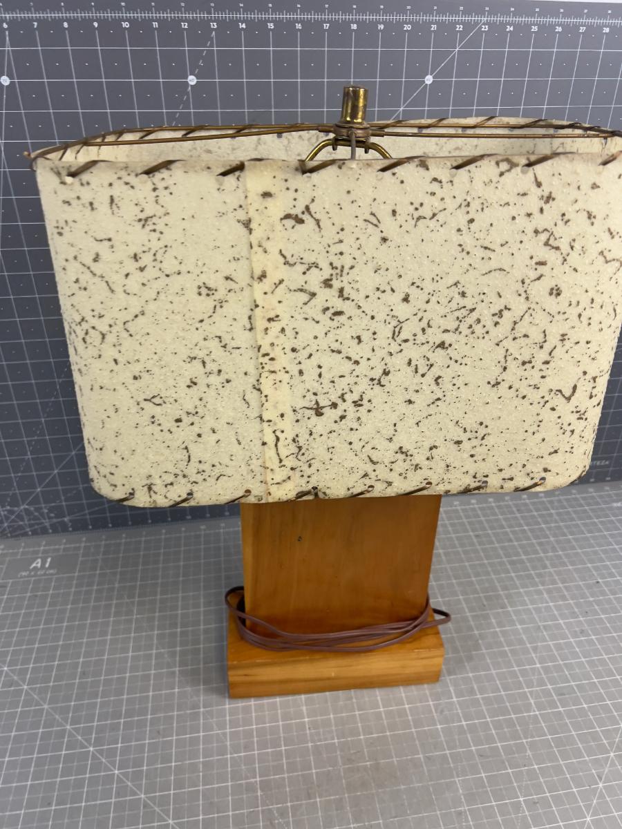 Vintage Atomic Ranch Style Fiberglass Shade w/ wood Base Lamp