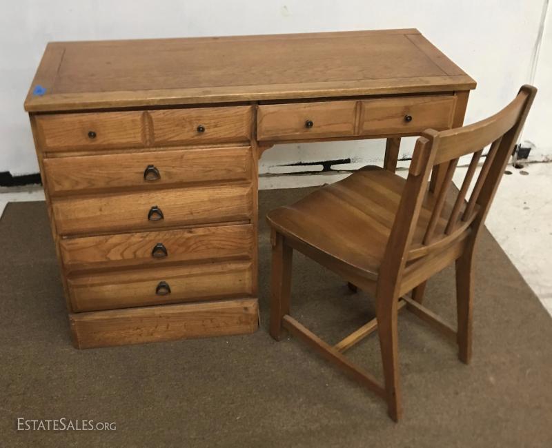 Vintage Atomic Ranch Style Student Desk w/Chair Solid Oak