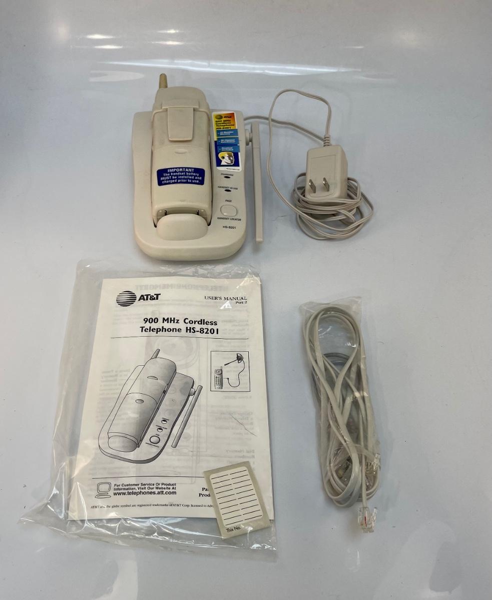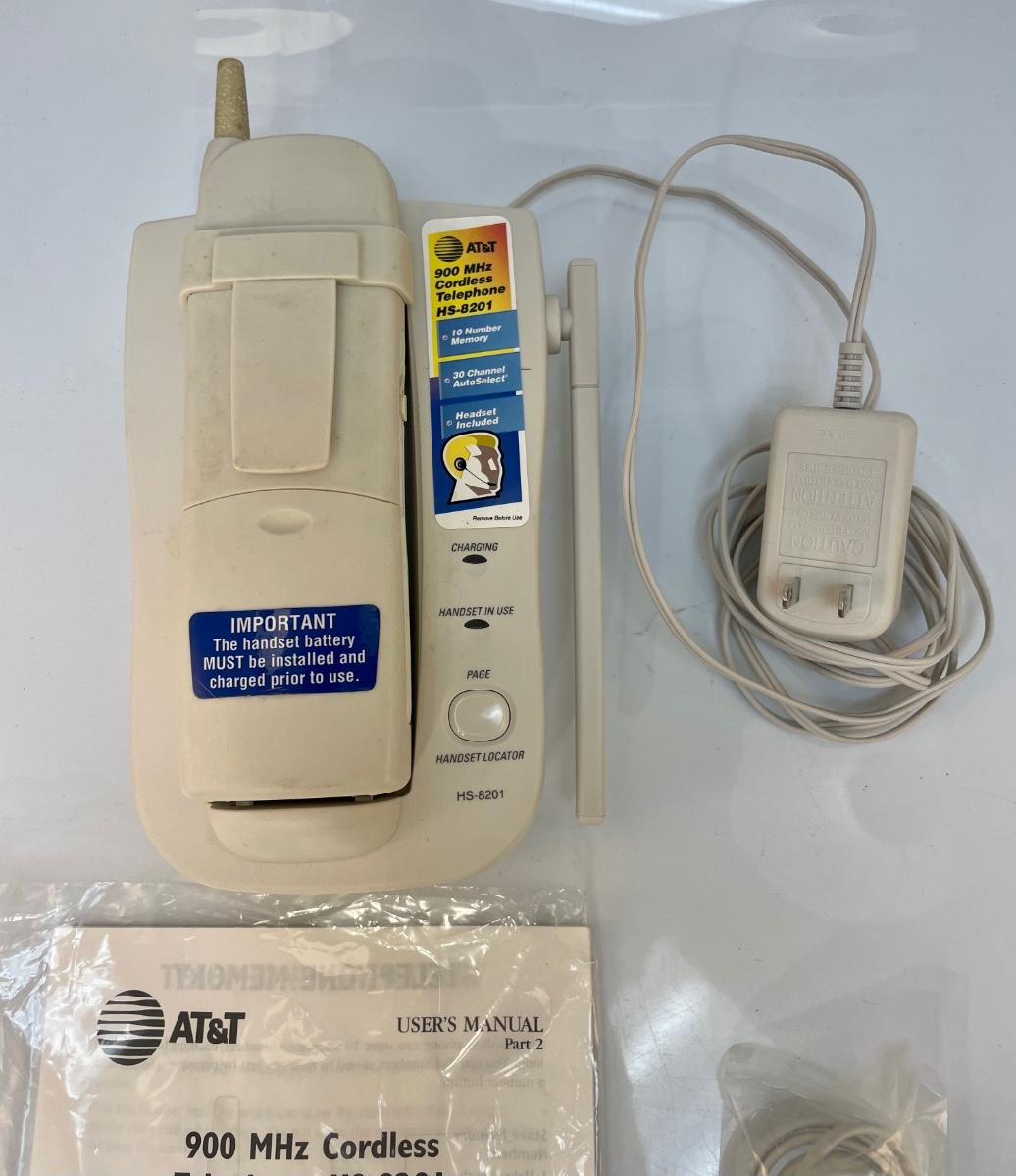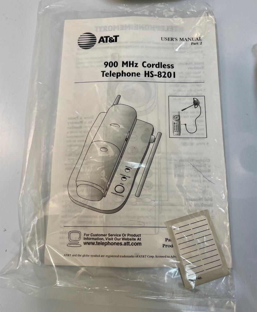 Vintage AT&T Cordless Phone, 900 MHz, Model HS-8201. Includes original user manual.