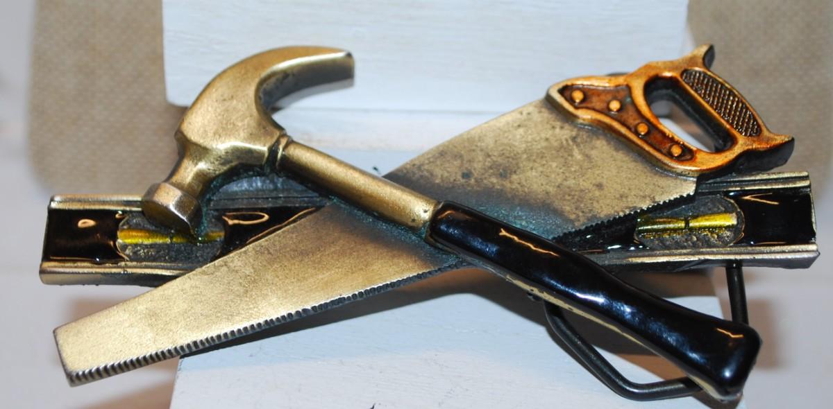 Vintage "Hammer, Saw & Ruler" Belt Buckle 4" x 3" Perfect for the Carpenter Person in Your Life