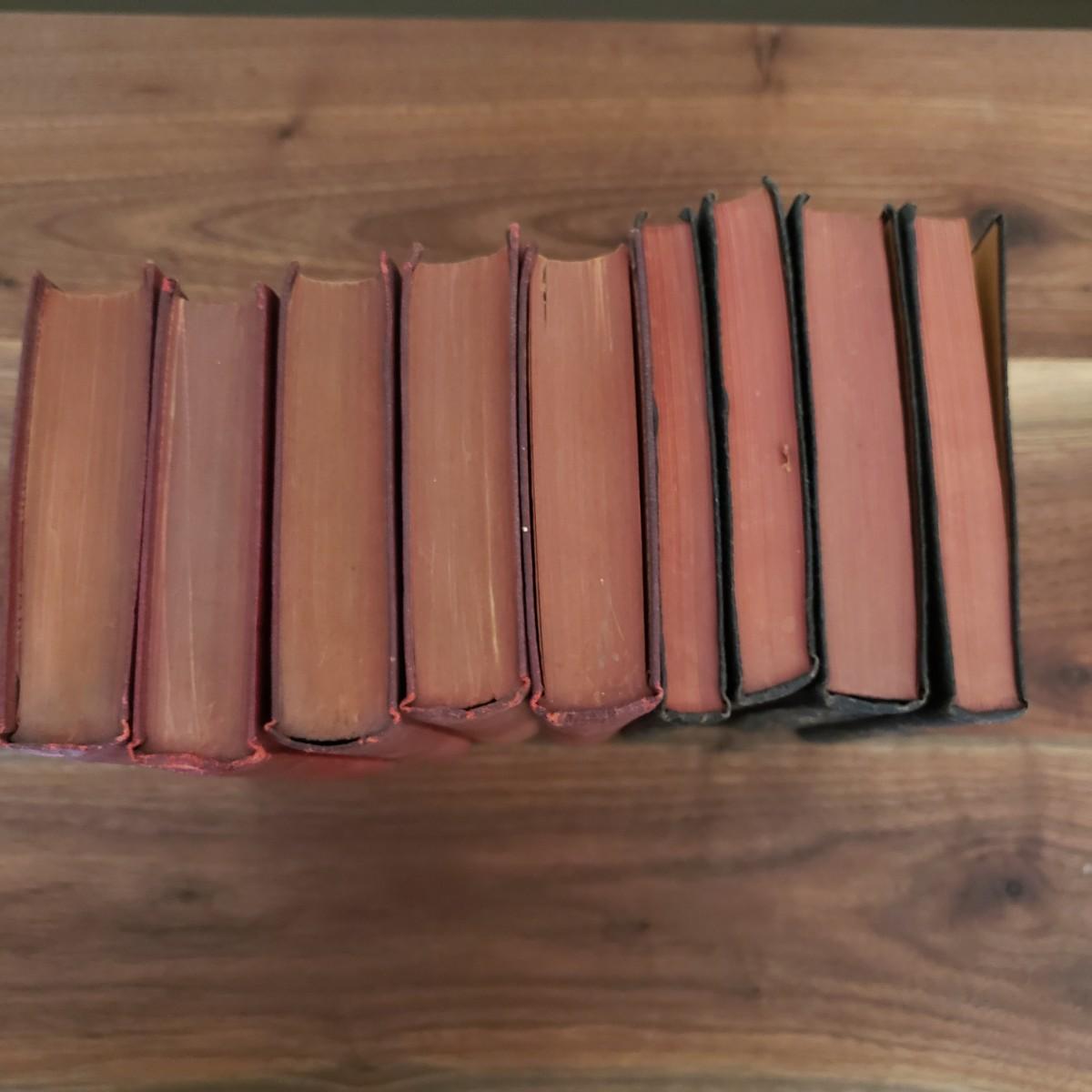 The red books are hard covered Odham's Press books with practical advice and information. The black set are soft covered books that are Audel's Carpenters & Builders Guides. See pictures for details and titles.
