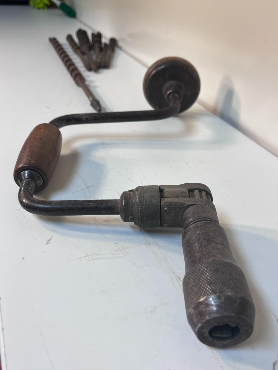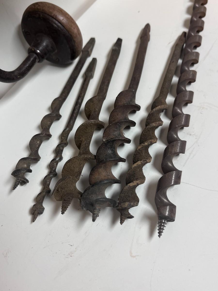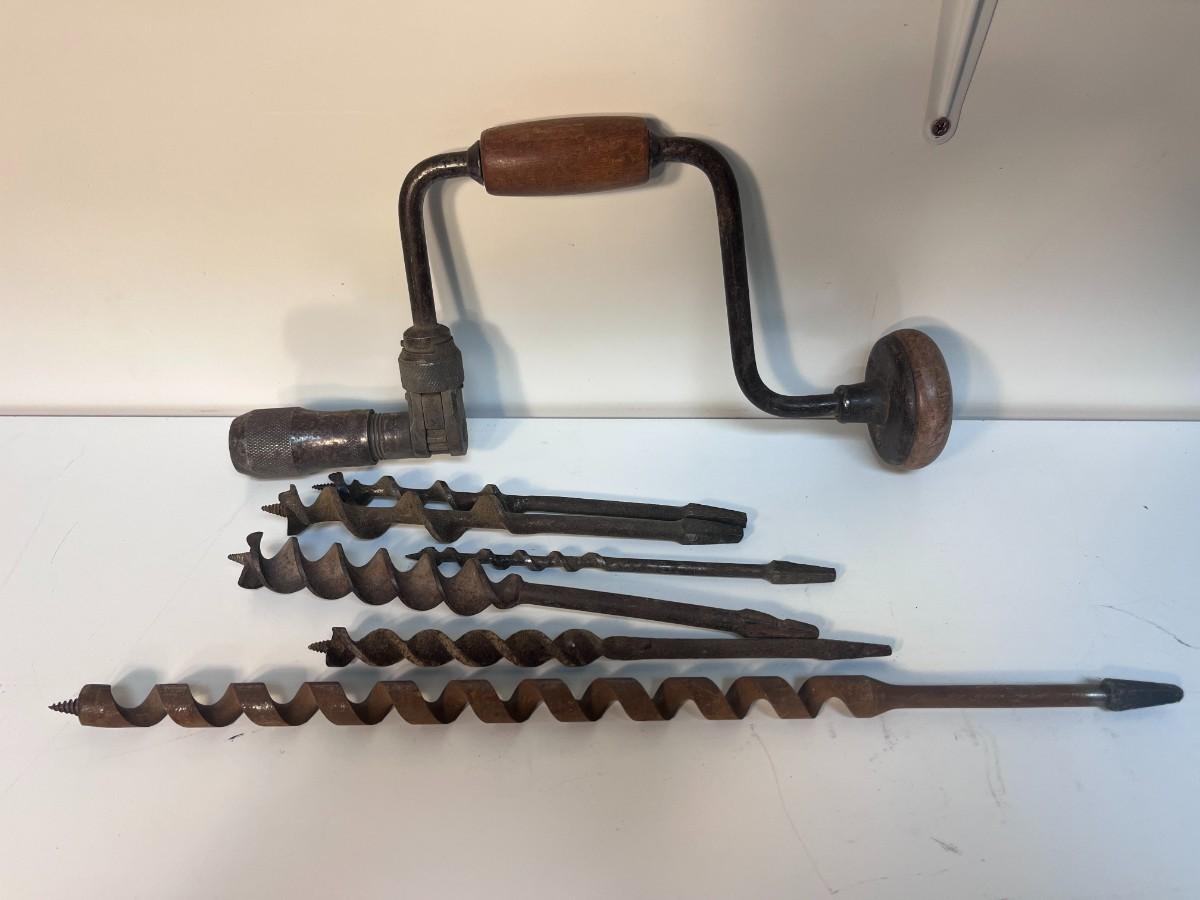 VINTAGE AUGER BRACE DRILL AND DRILL BITS
