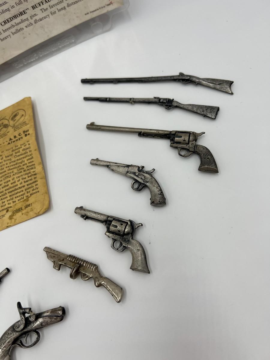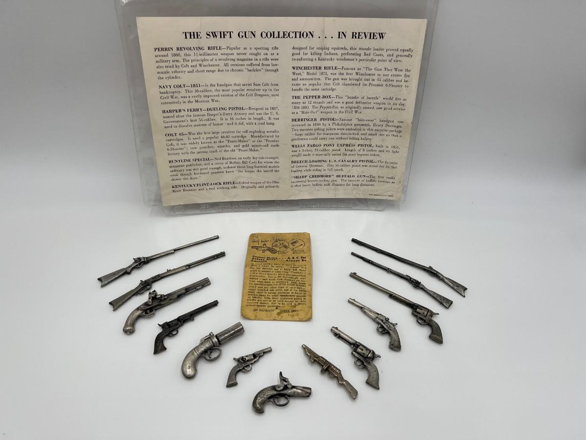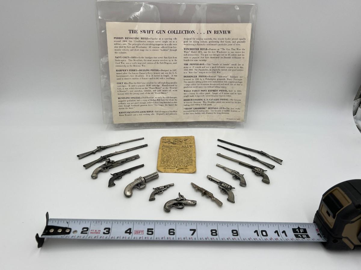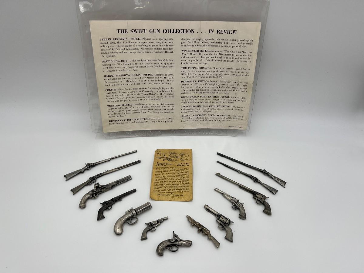 Vintage August 1961 Entire Swift Gun Collection. Includes 13 miniature toy pistols and rifles.