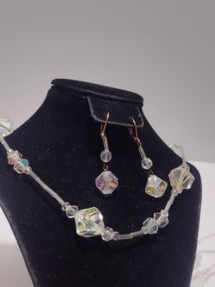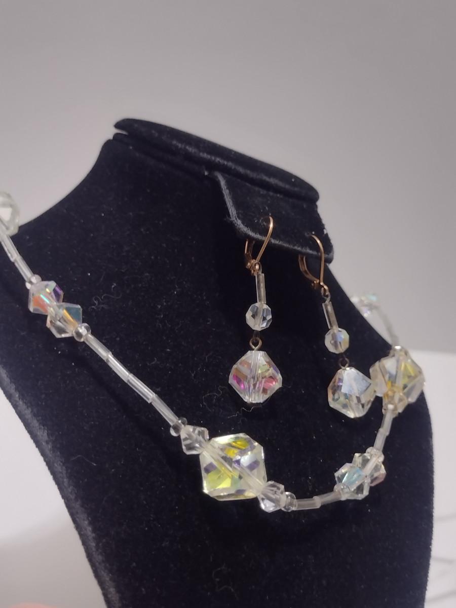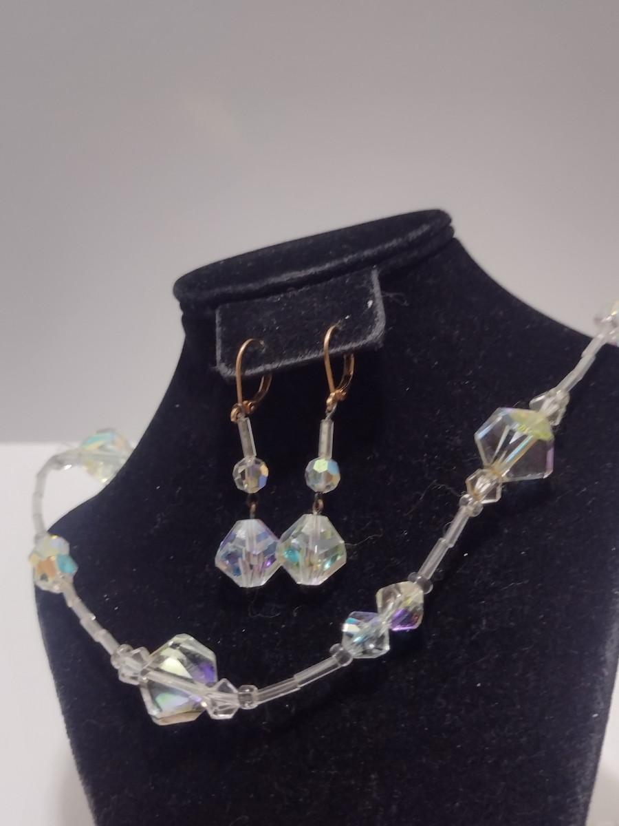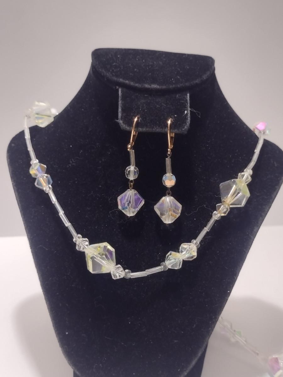 Vintage Aurora Borealis Necklace and Earrings- Faceted Beads, Possibly Swarovski- 28" Necklace (#14)