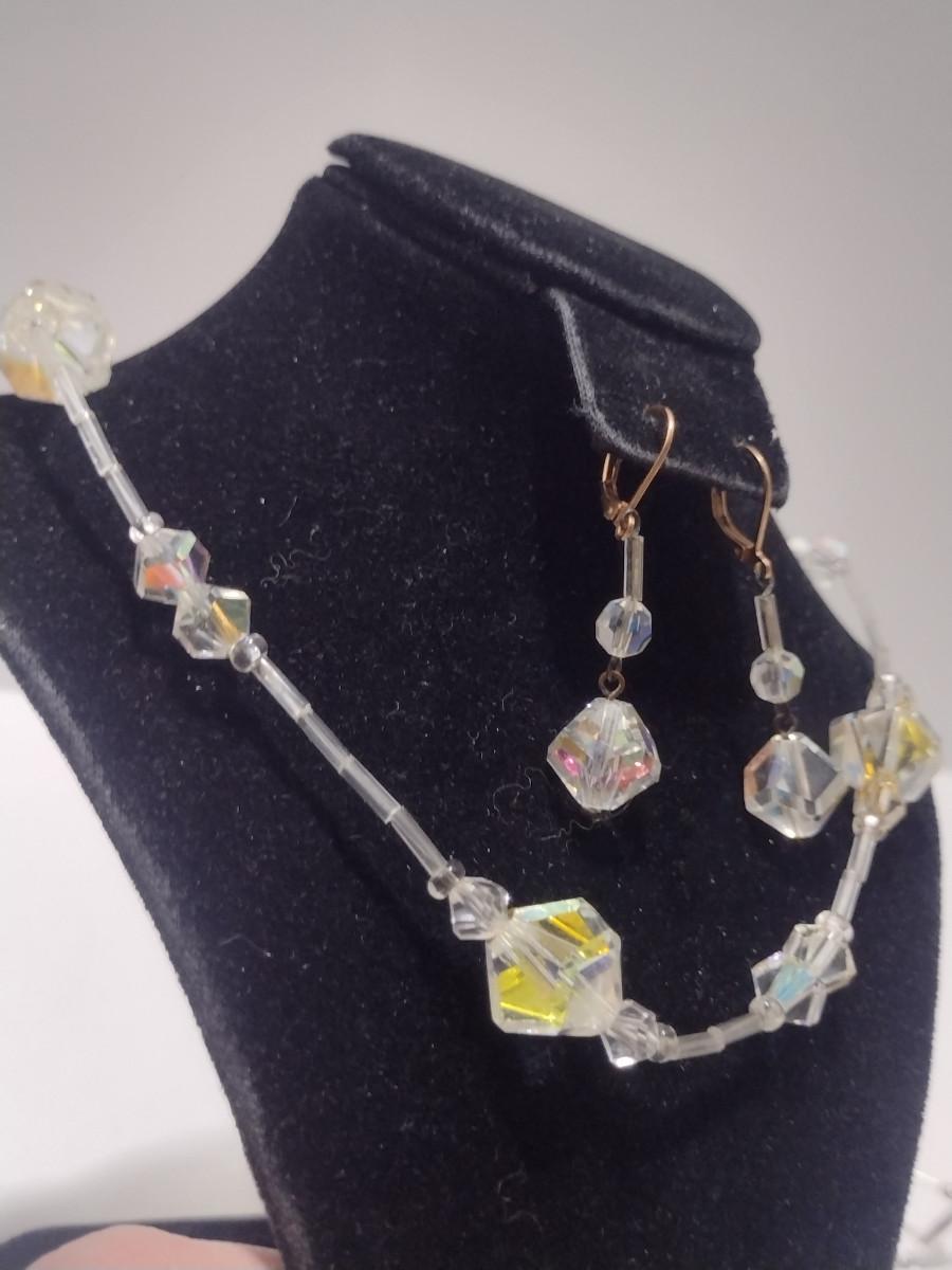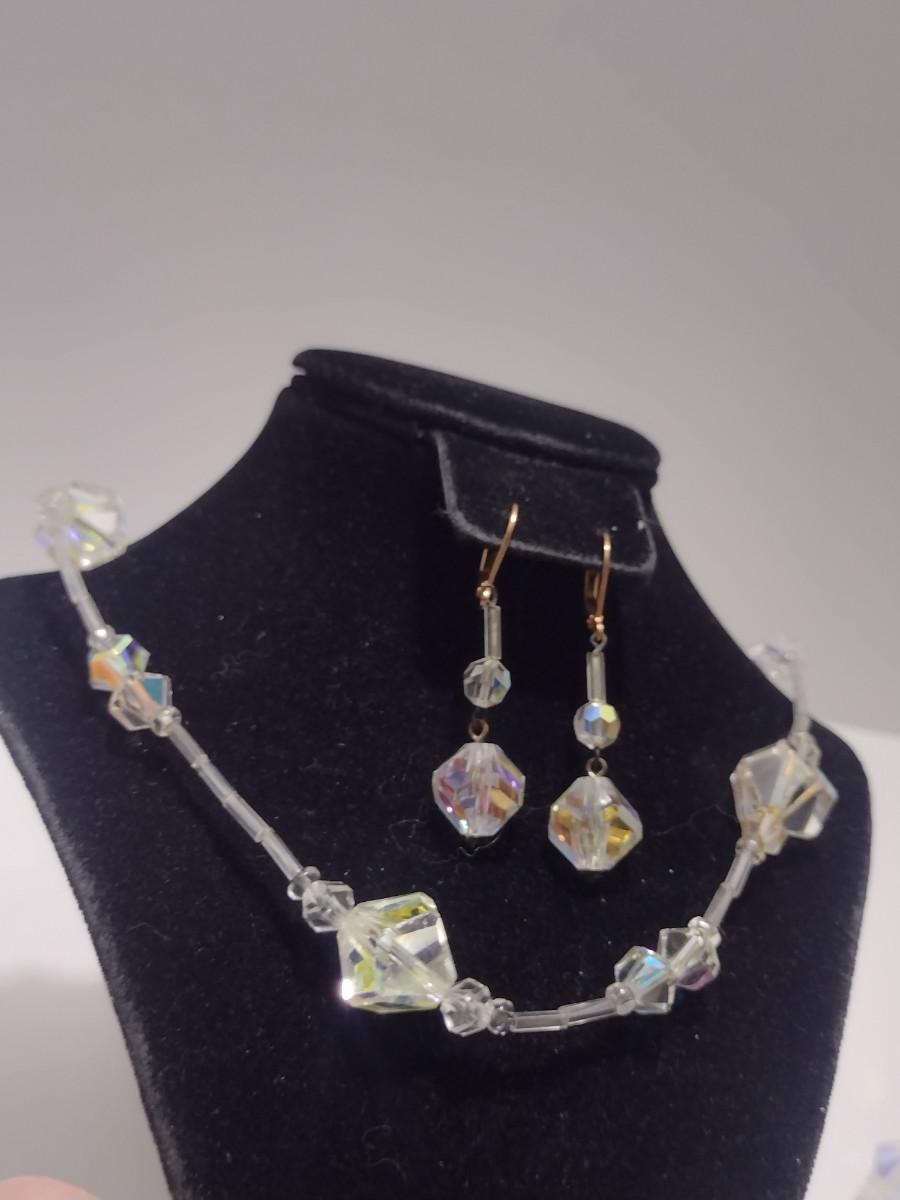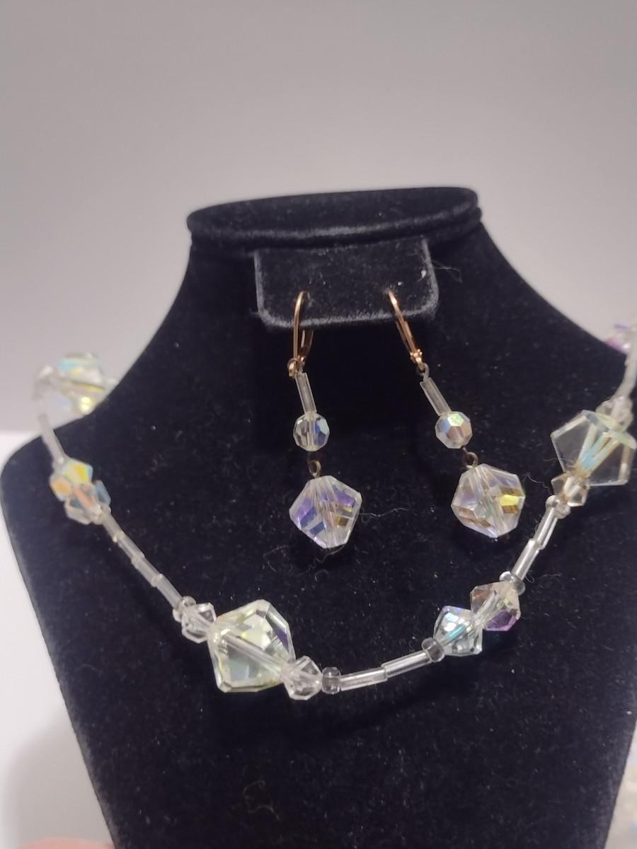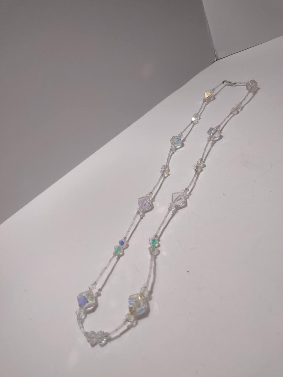 Vintage Aurora Borealis Necklace and Earrings- Faceted Beads, Possibly Swarovski- 28" Necklace (#14)
