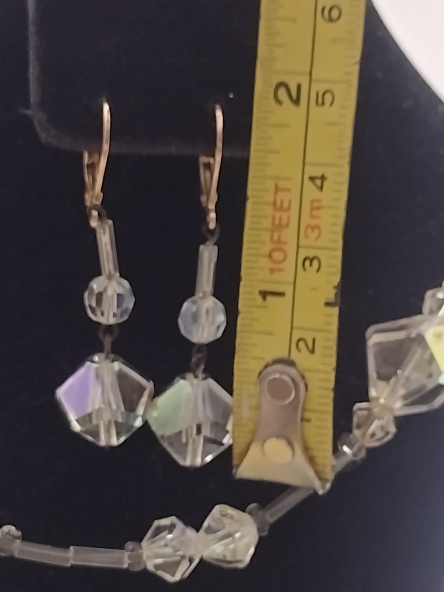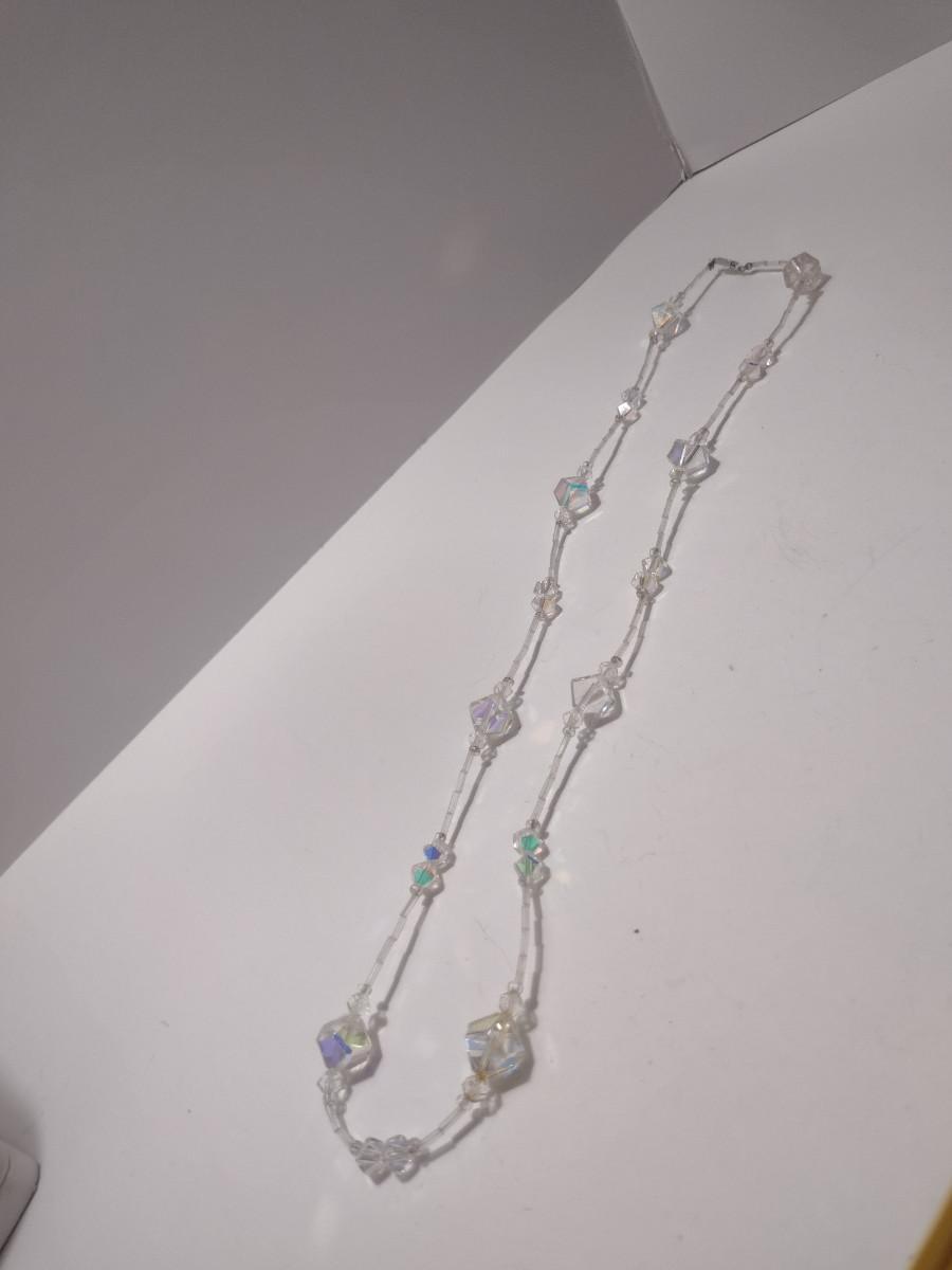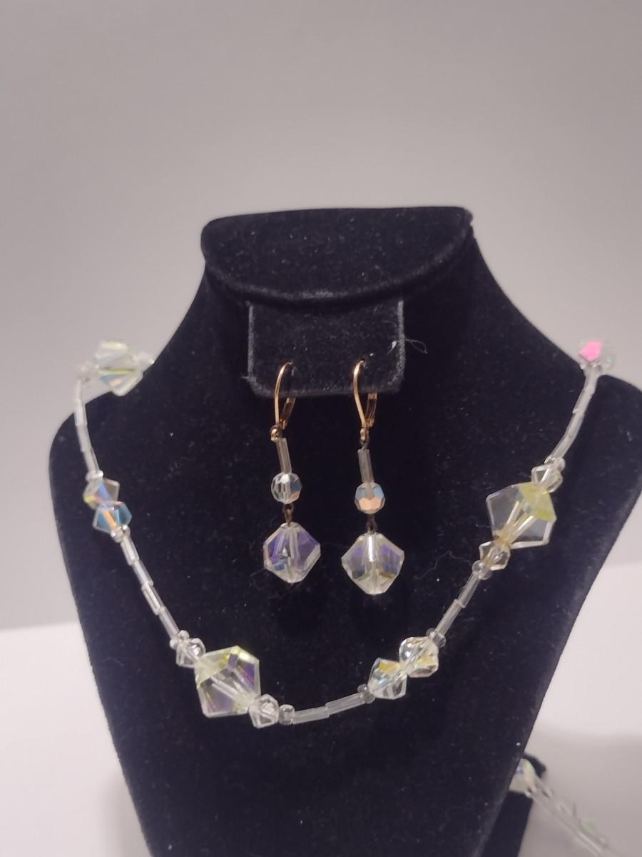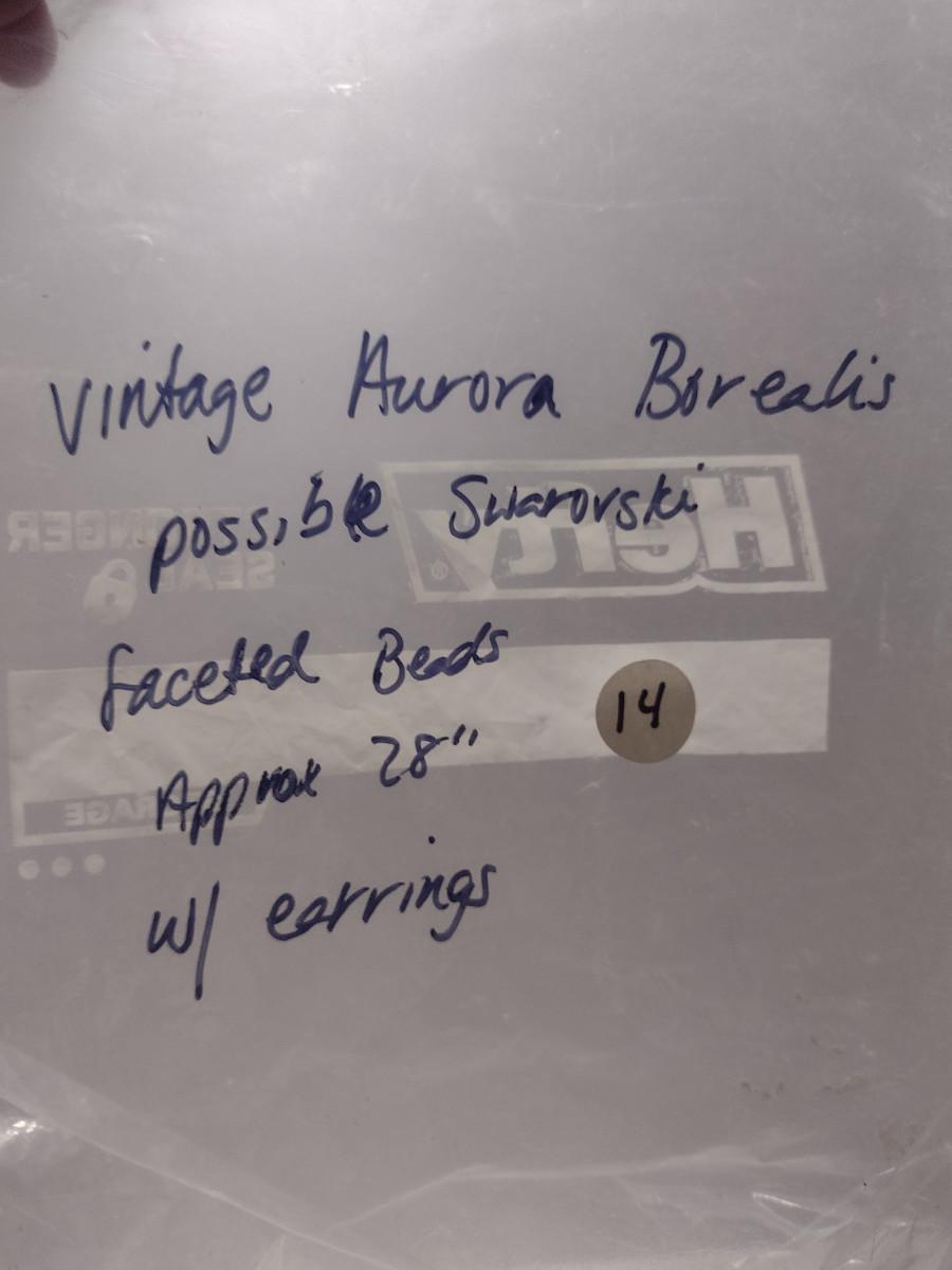 Vintage Aurora Borealis Necklace and Earrings- Faceted Beads, Possibly Swarovski- 28" Necklace (#14)