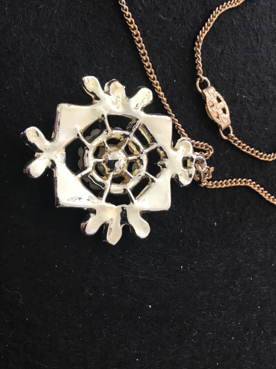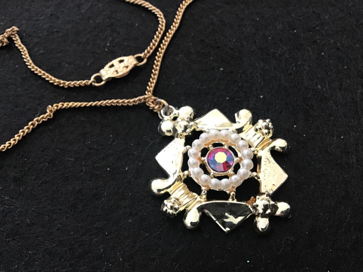 Vintage, Aurora Borealis, rhinestone Faux , pearl pendant, necklace, Germany