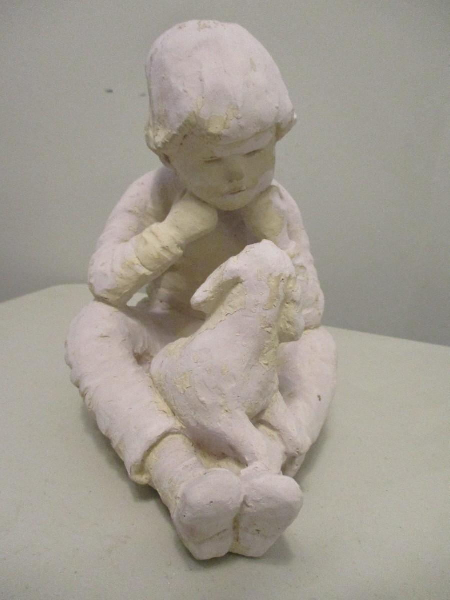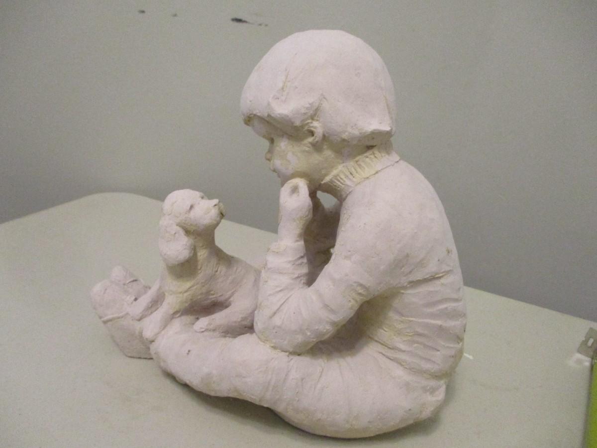 Vintage Austin Productions Dee Crowley Bright Eyes Sculpture Boy with Dog 1980's