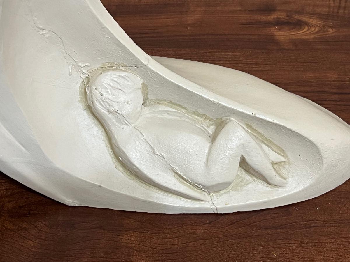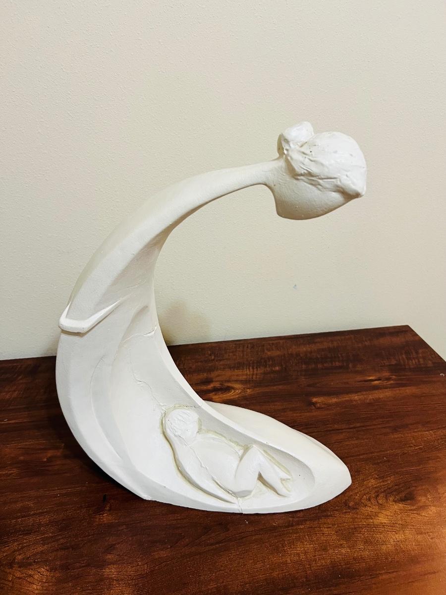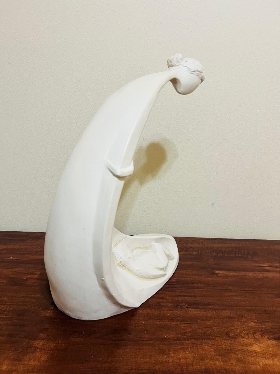 Large Vintage Austin Productions Mother And Child Sculpture. Will include wooden stand. Measures 19 1/2 inches at its tallest and approximately 16 inches wide Please note, painter must have gotten a brush stroke on the bottom. See picture for exact condition.