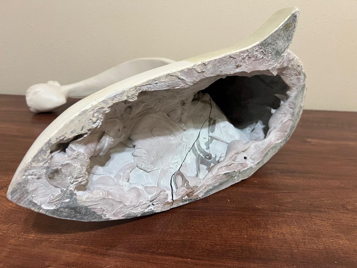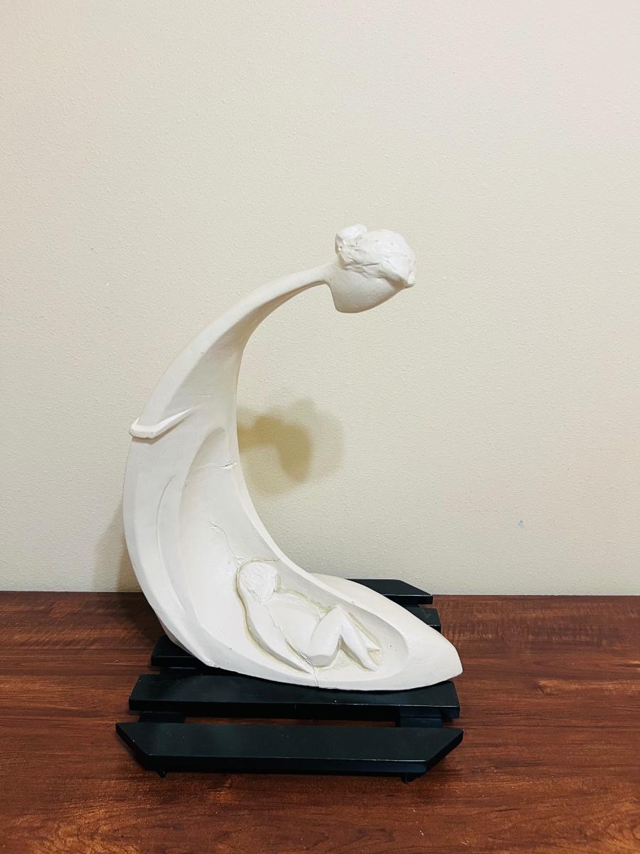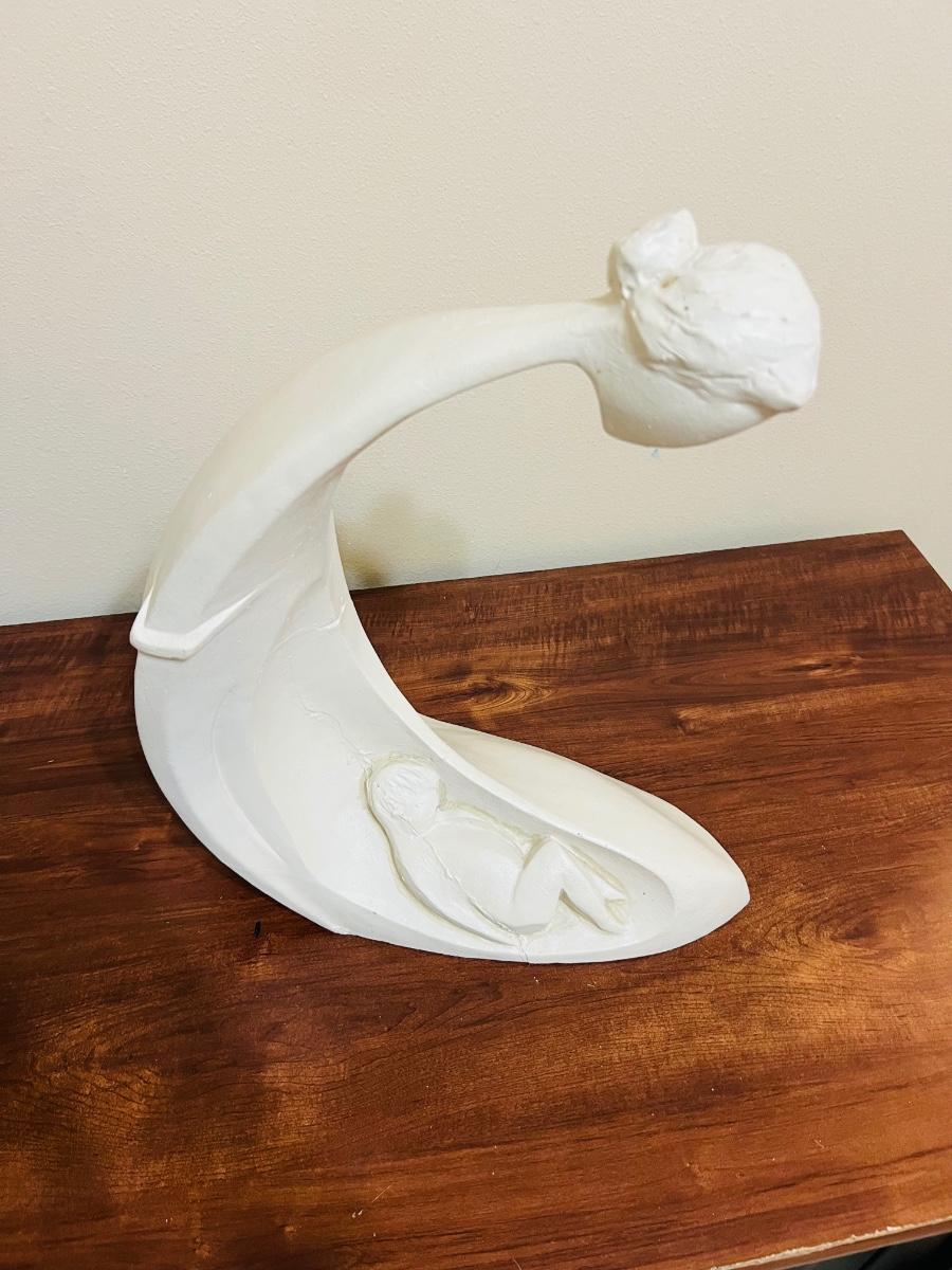 Large Vintage Austin Productions Mother And Child Sculpture. Will include wooden stand. Measures 19 1/2 inches at its tallest and approximately 16 inches wide Please note, painter must have gotten a brush stroke on the bottom. See picture for exact condition.