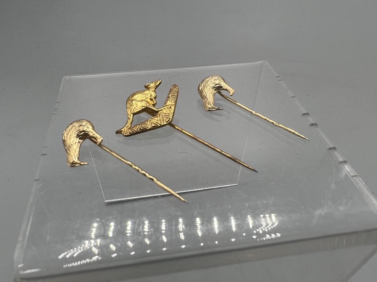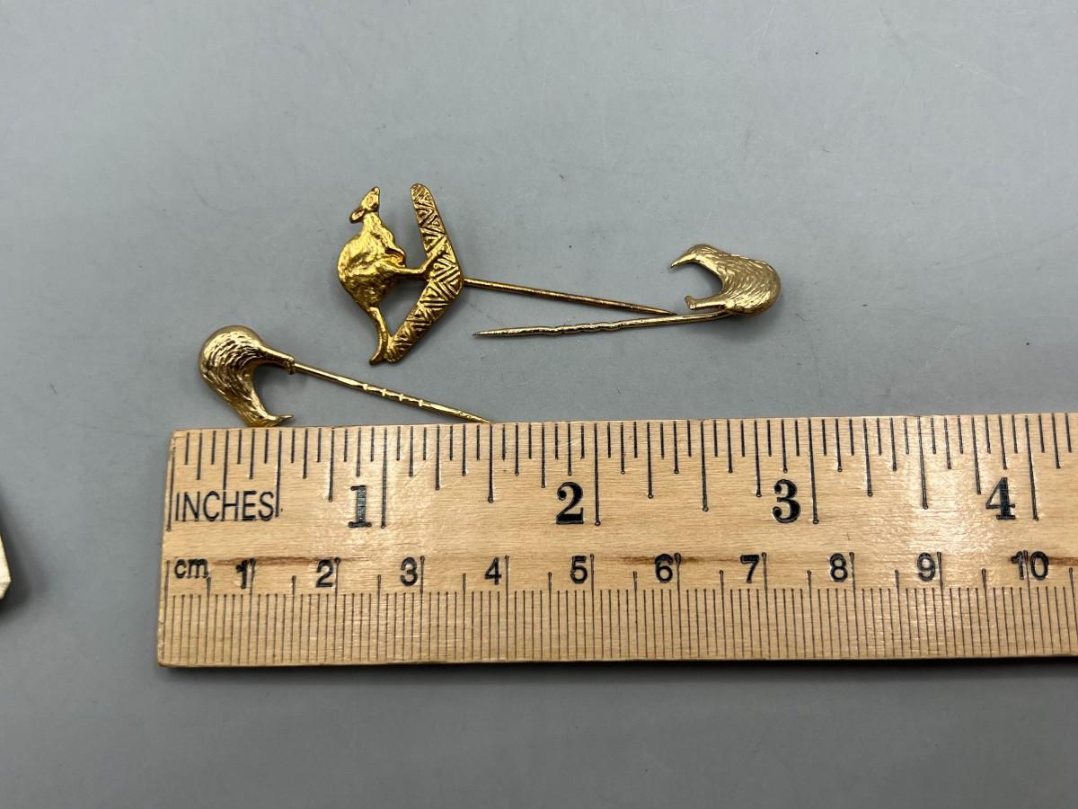 Vintage Australia Pioneer Tours Kangaroo Boomerang Kiwi Birds Souvenir Stick Pins