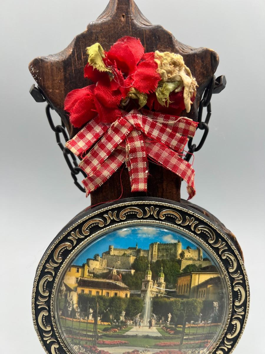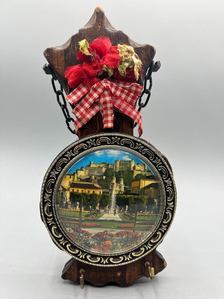Vintage Austria Salzburg Castle & Gardens Souvenir Hanging Key Hook Plaque