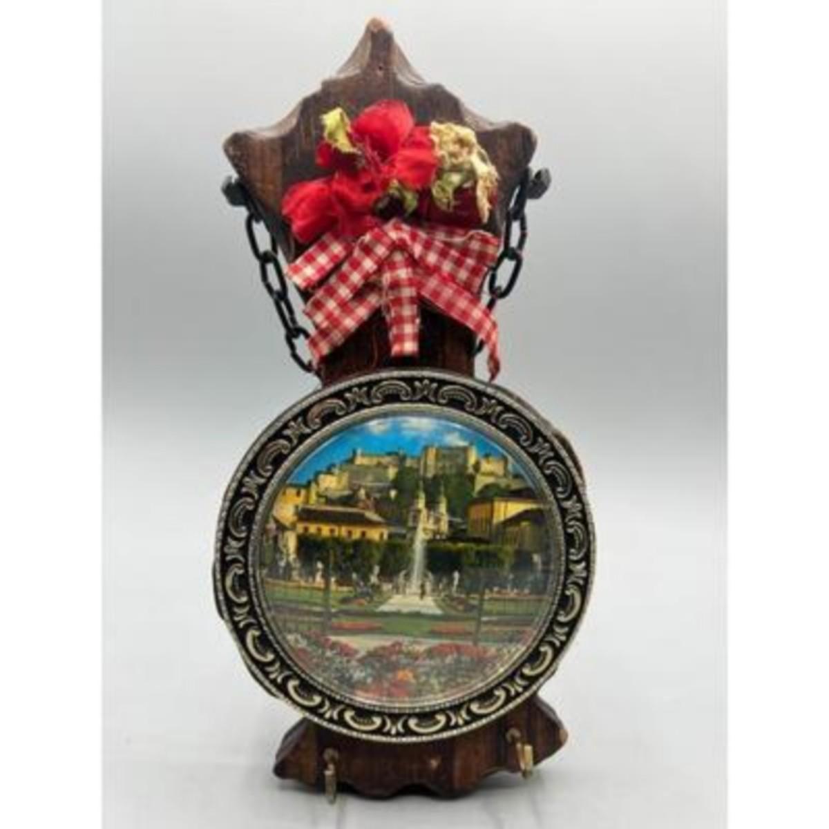 Vintage Austria Salzburg Castle & Gardens Souvenir Hanging Key Hook Plaque