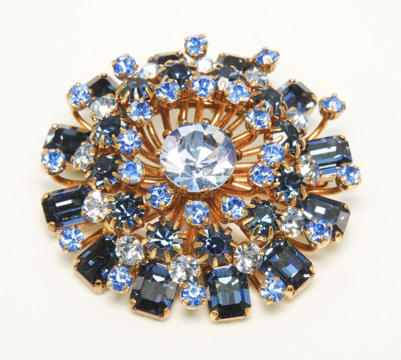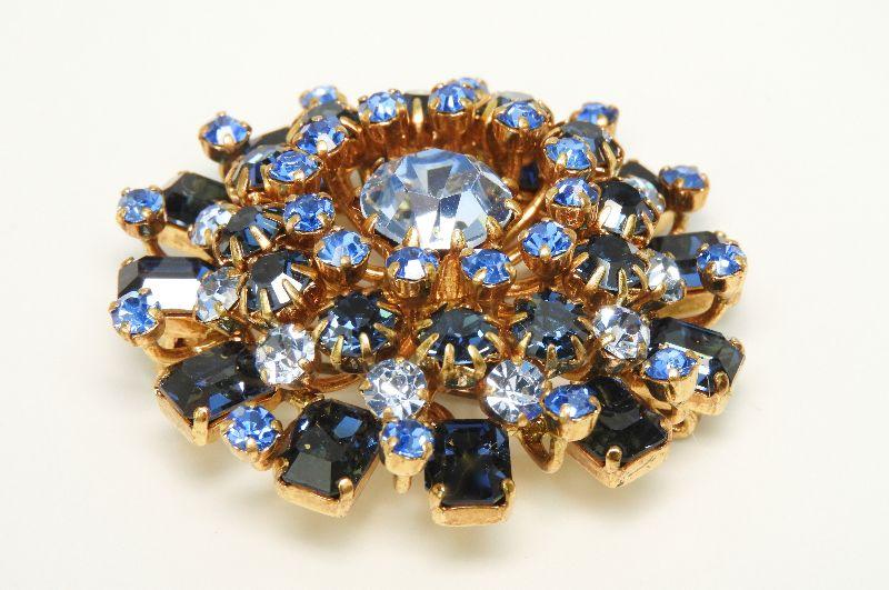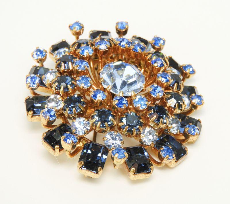 Vintage Austrian Blue Crystal Rhinestone Tiered Brooch