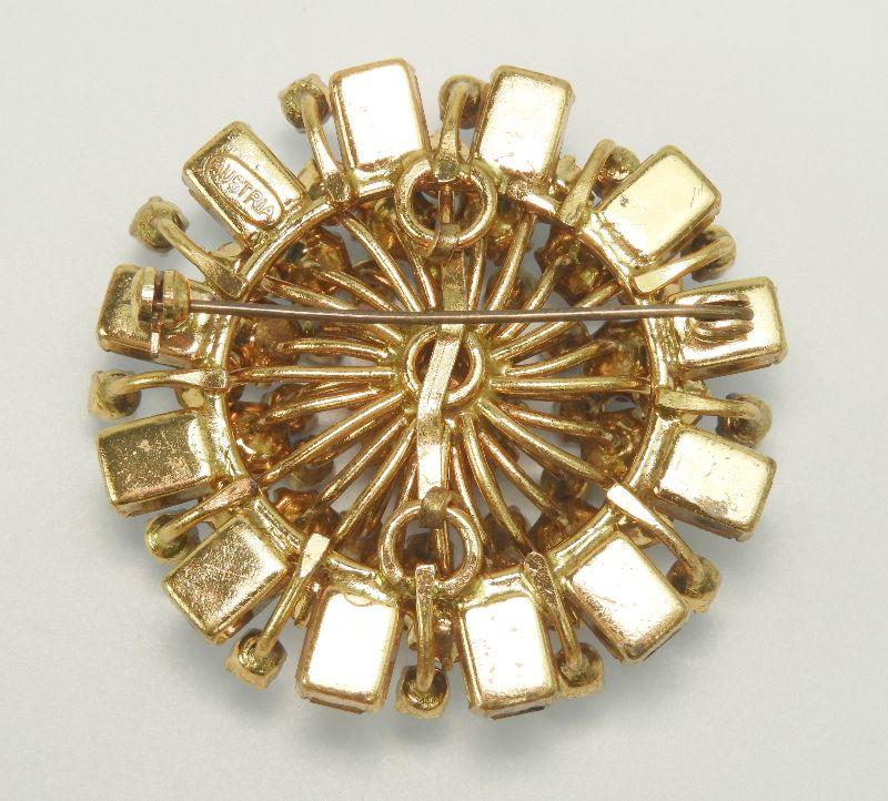 The brooch measures 2" across. As with all vintage jewelry, this item was previously owned. In most cases expect some wear associated with age. Please view pictures as they are part of the description, and ask questions before bidding. Thank you for visiting Aunt Ellie's Vintage Sales. Happy bidding and good luck!