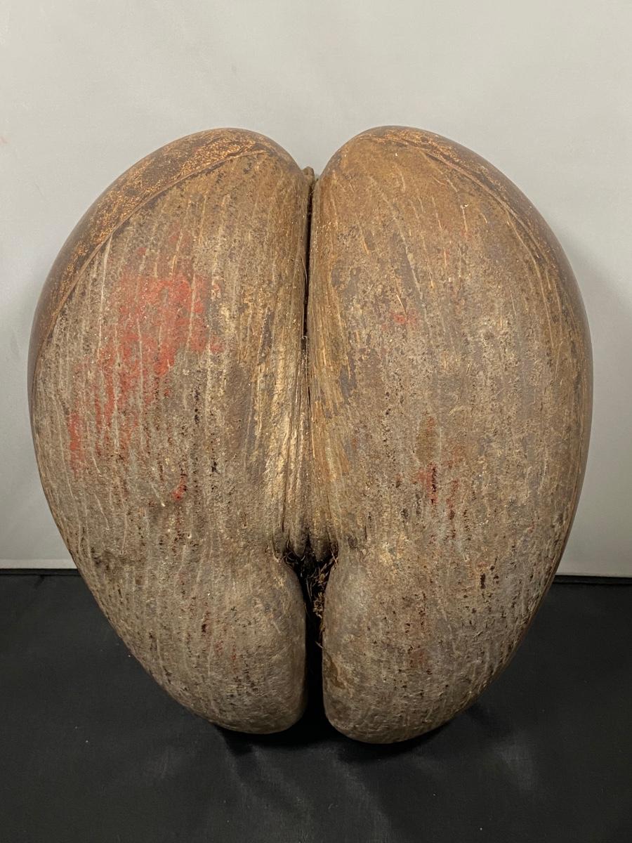Vintage Authentic Coco de Mer Seychelles Seed Old Sea Nut Whole Carved