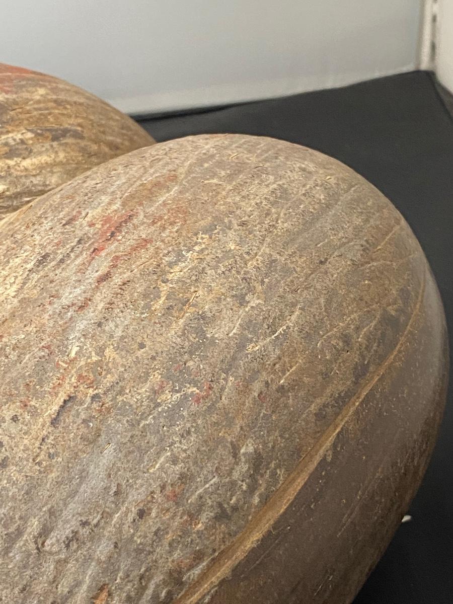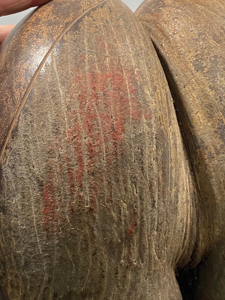 Authentic Coco de Mer Seychelles nut. Double seed, you can hear the seed inside when shook. Vintage souvenir, you can see where it was scratched and maybe painted at one time. Large, about 15".