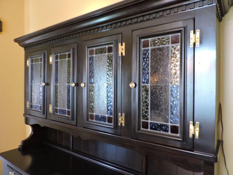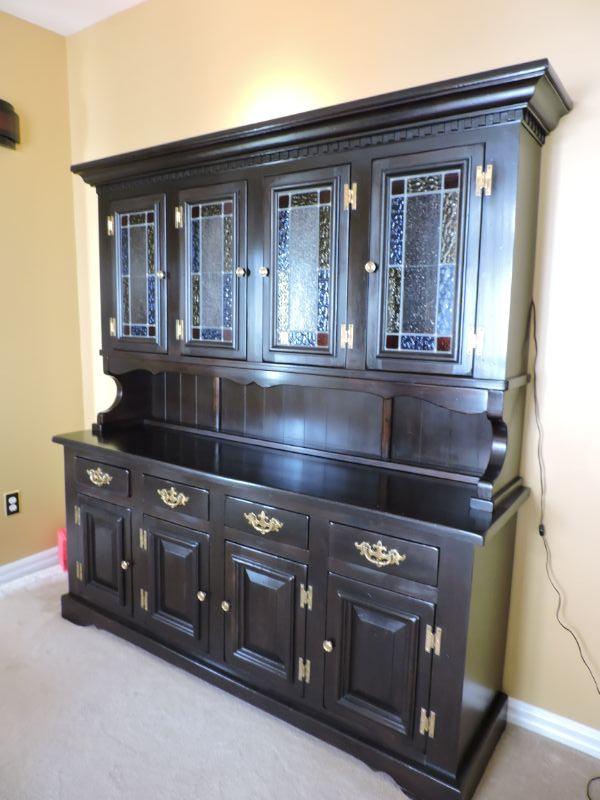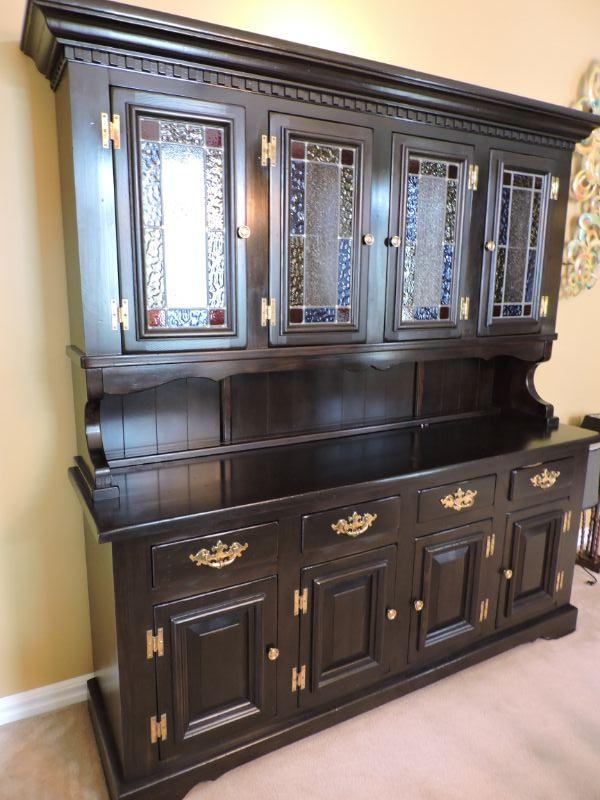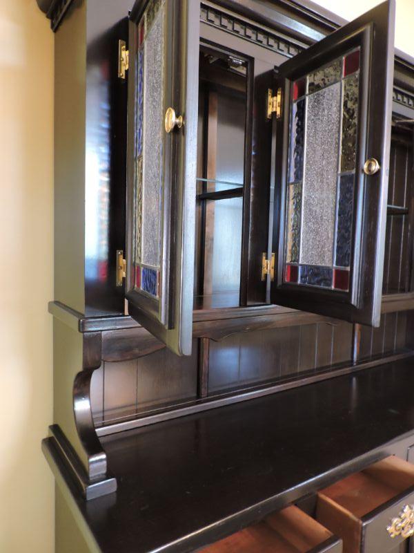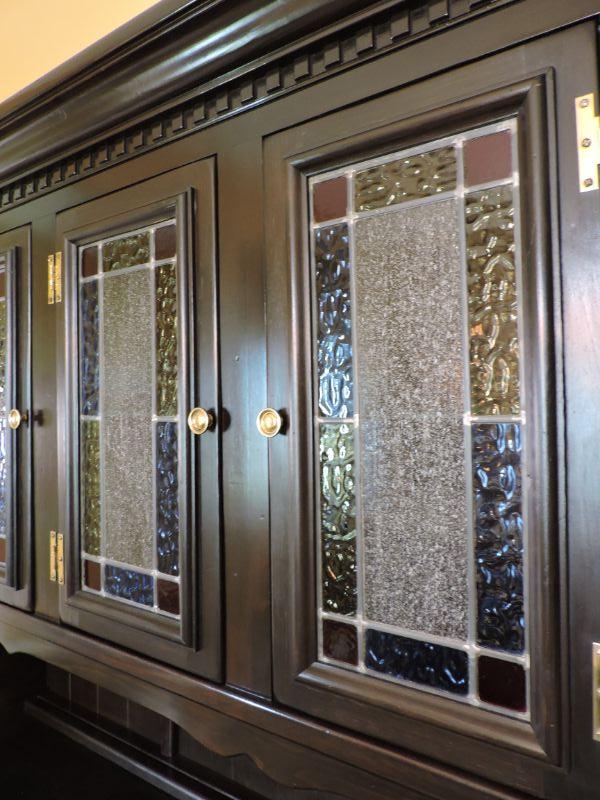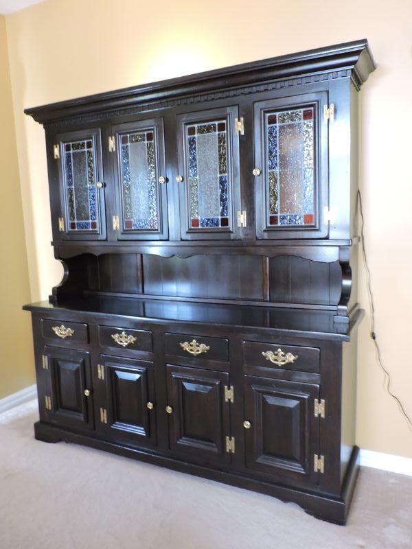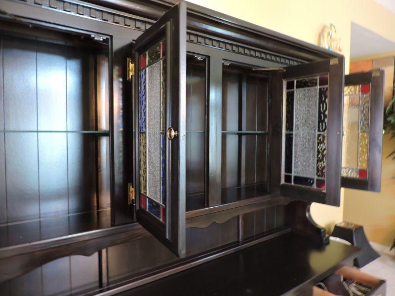 Matching the dining table, this buffet is even more stunning with 4 stained glass doors across the front. Made in the 1950-60's, this solid maple buffet comes with a utensil drawer (utensils not included) and lighting inside the buffet and on the top. This is two pieces. 6'x19.5"x78" **Please read Terms and Conditions before placing a bid. Pick up is Wednesday, September 25 from 4pm to 7pm and Saturday, September 28 from 9am to 1pm in Williamstown, NJ. All sales are final. All sales are as is, where is. Please review all photos. Any props included in photos are not included in listing. All measurements are approximate.