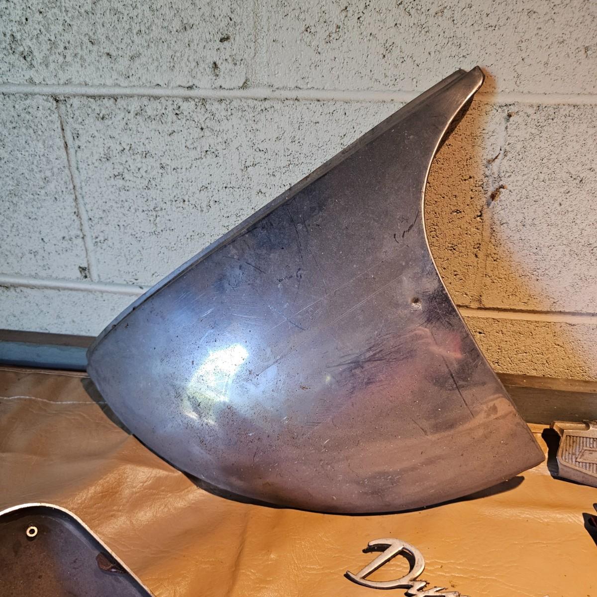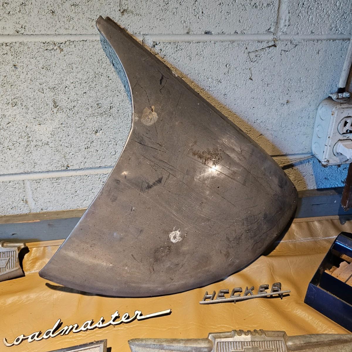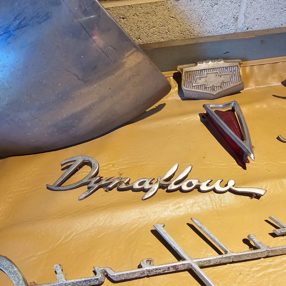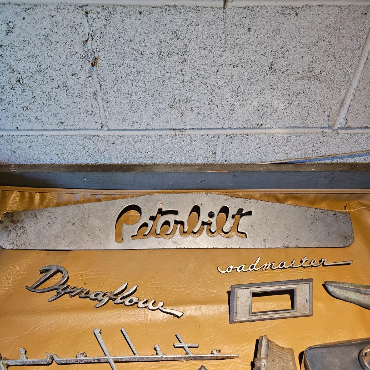 Several types of auto emblems including Chevy, Pontiac, Olds and more. Also an assortment of mirrors with and without glass, car types unknown. Two fender skirts, 18.5"x 14"H, also unknown. One Peterbilt emblem, 24" wide. See photos for details. Shipping available.