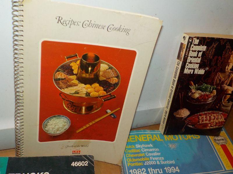 Vintage auto repairs books and 2 cook books of Chinese food.