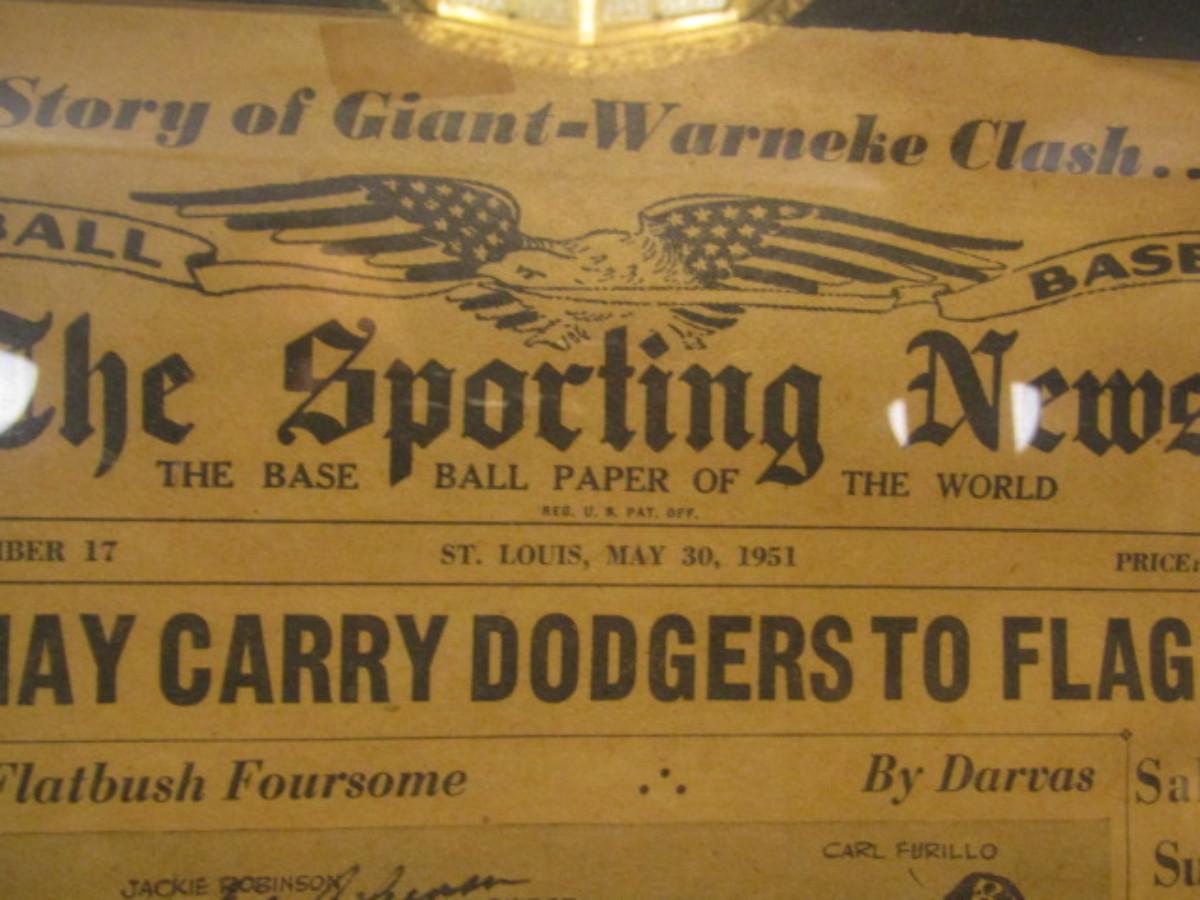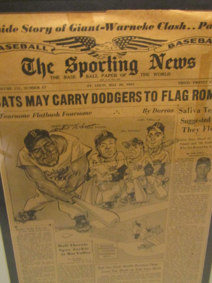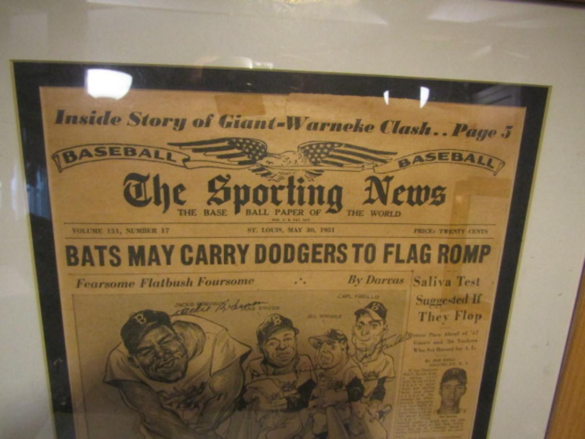 Autographed 1951 'The Sporting News' Baseball Newspaper Jackie Robinson, Duke Snider, Gil Hodges, and Carl Furillo.