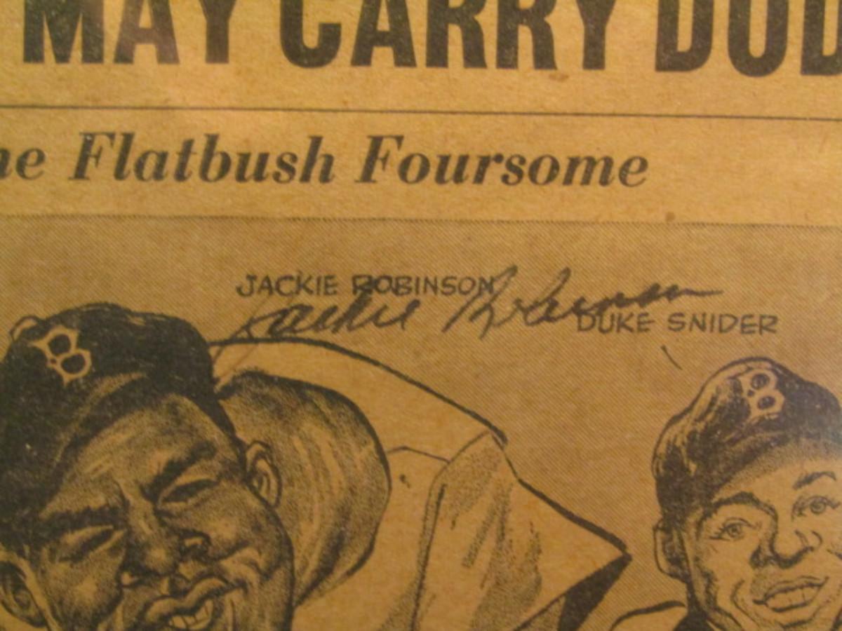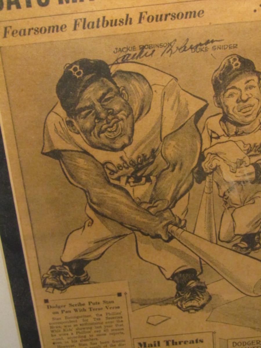 Vintage Autographed 'The Sporting News' Baseball Newspaper- 4 Signatures- Jackie Robinson, Duke Snider, Gil Hodges, and Carl Furillo.