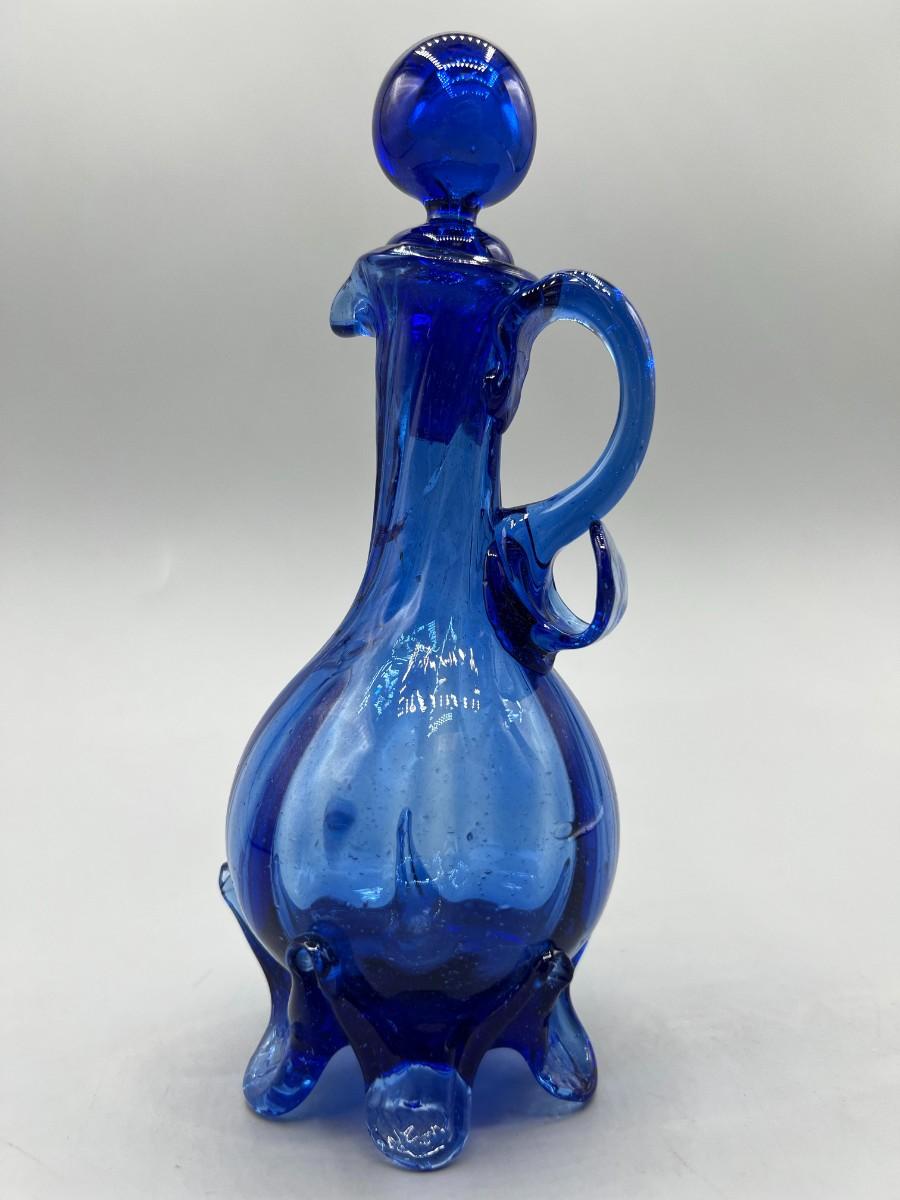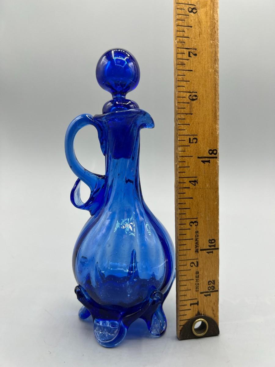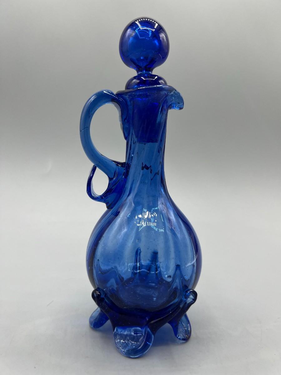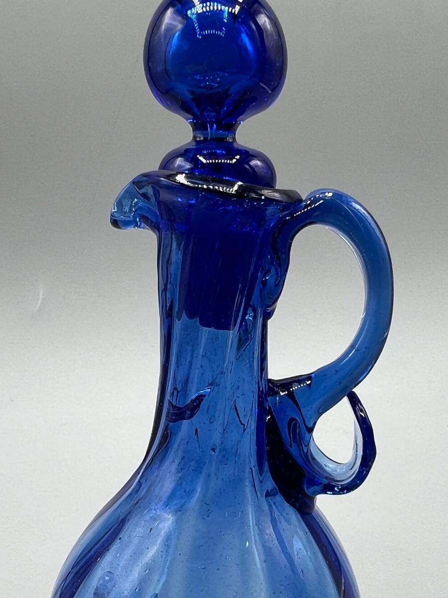 Vintage Avalos Mexico Pale Cobalt Blue Swirl Glass Cruet Decanter