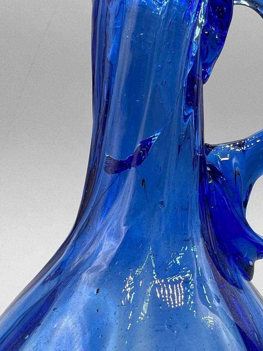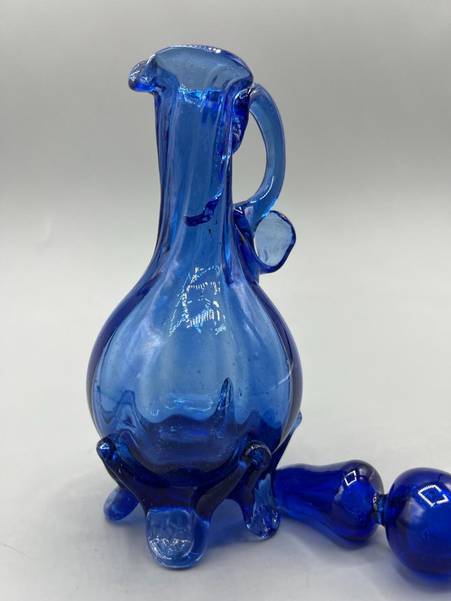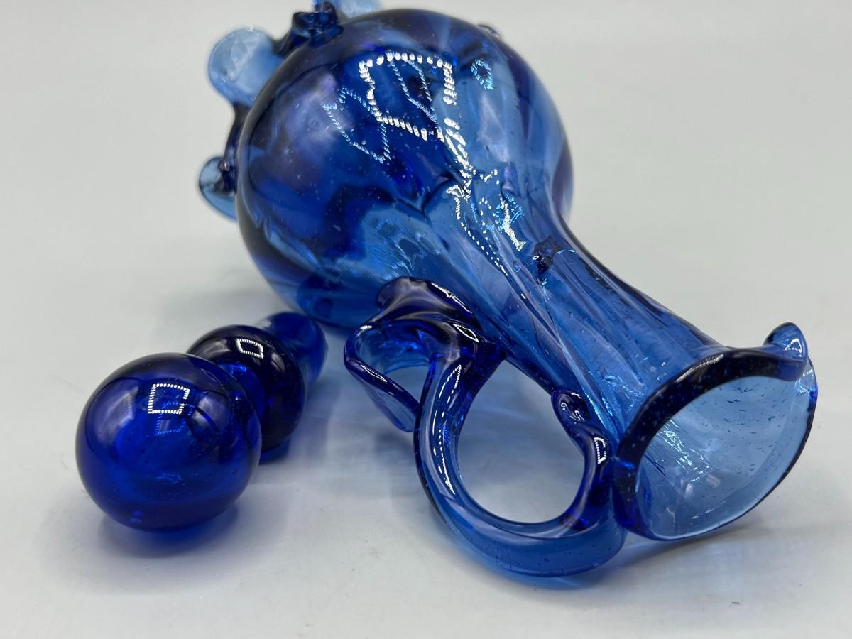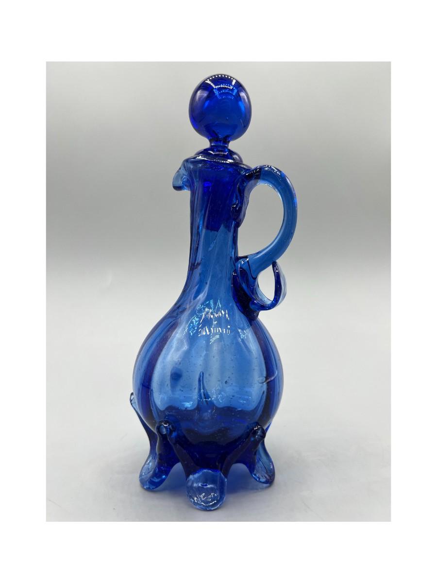 Vintage Avalos Mexico Pale Cobalt Blue Swirl Glass Cruet Decanter