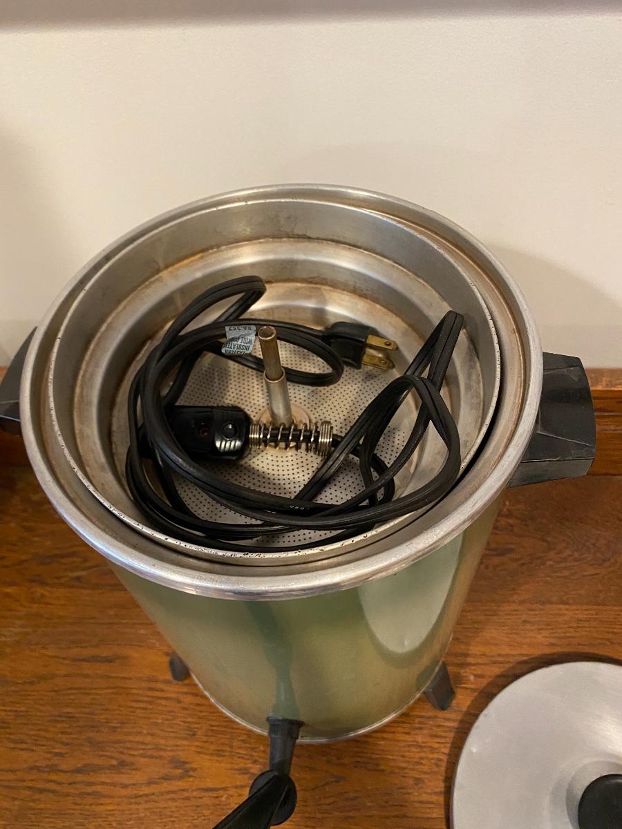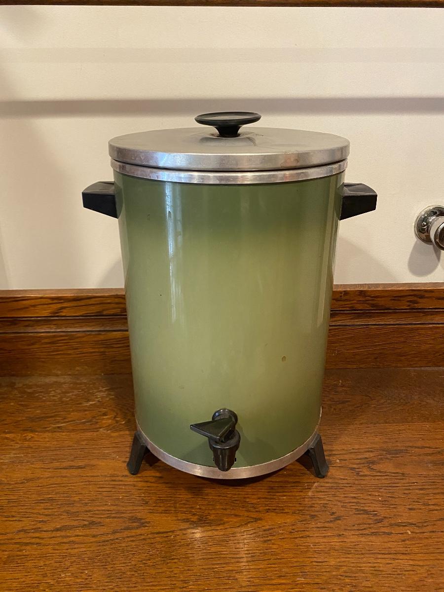 Vintage large avocado green electric coffee percolator. Untested. Did not find a brand name.