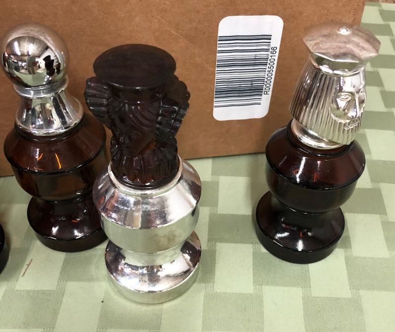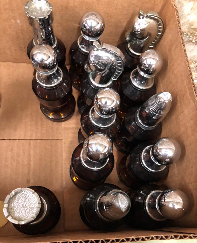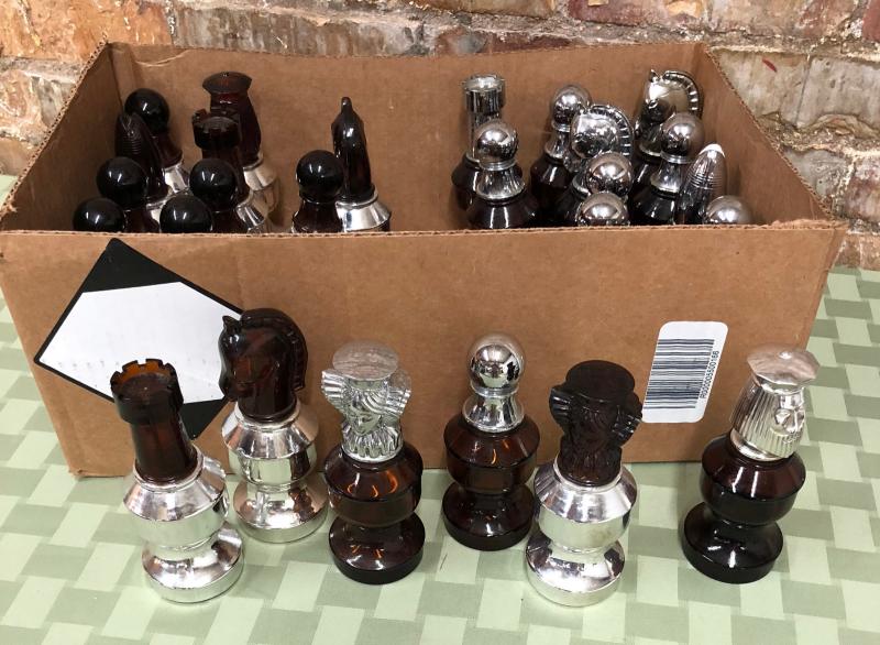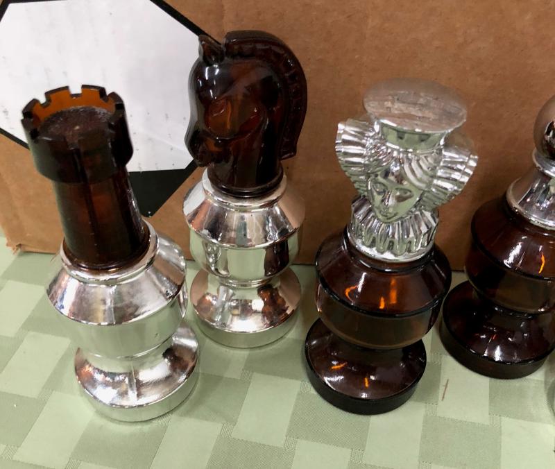 Complete with all 32 pieces here is a vintage Chess Set made up of Avon cologne bottles...as shown...No board...