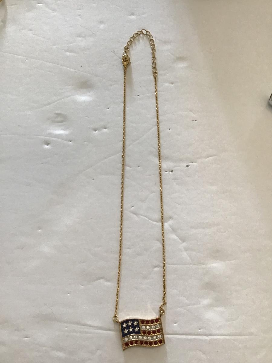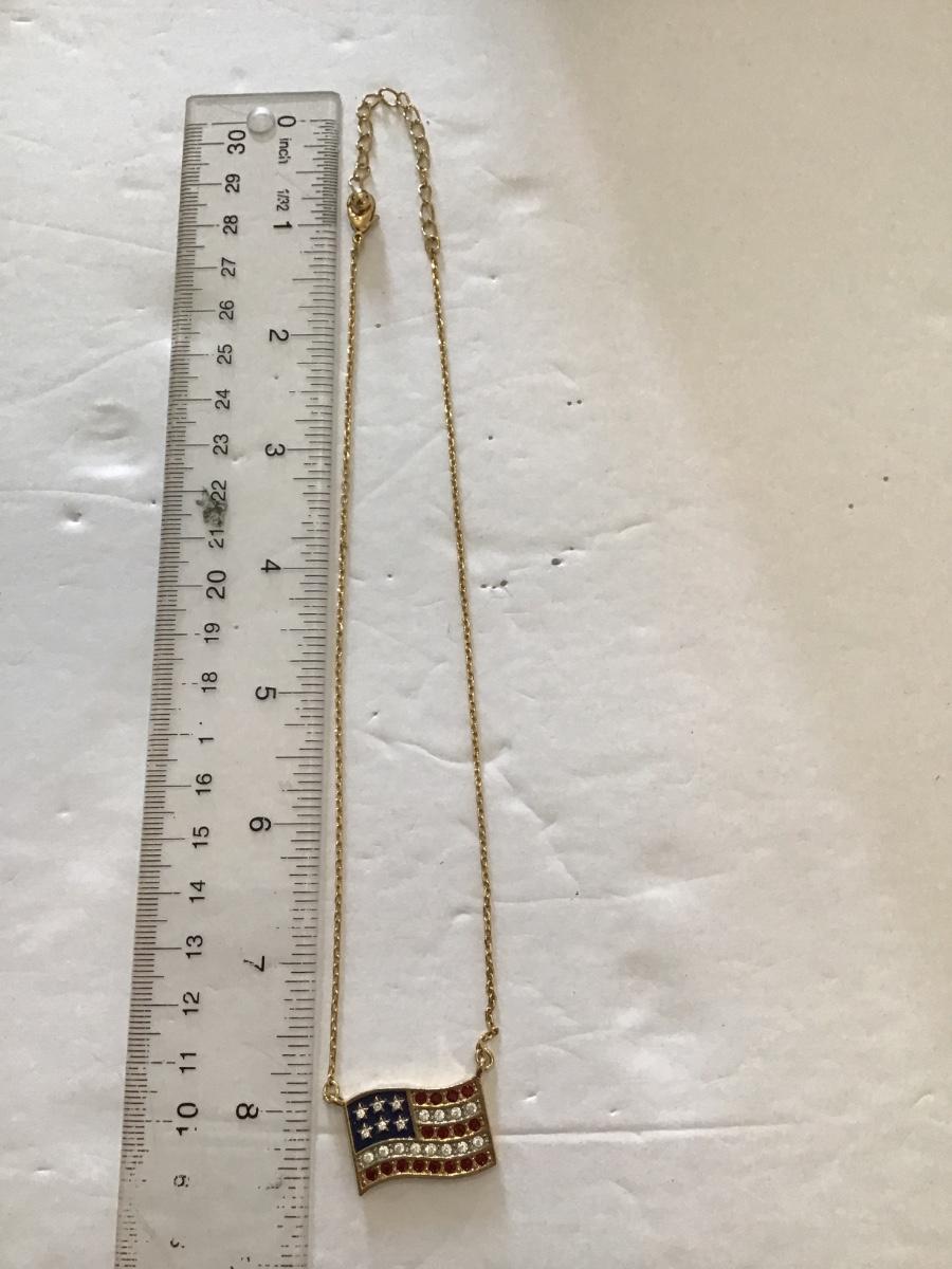 Vintage Avon, American flag rhinestone necklace. Please see attached photos.