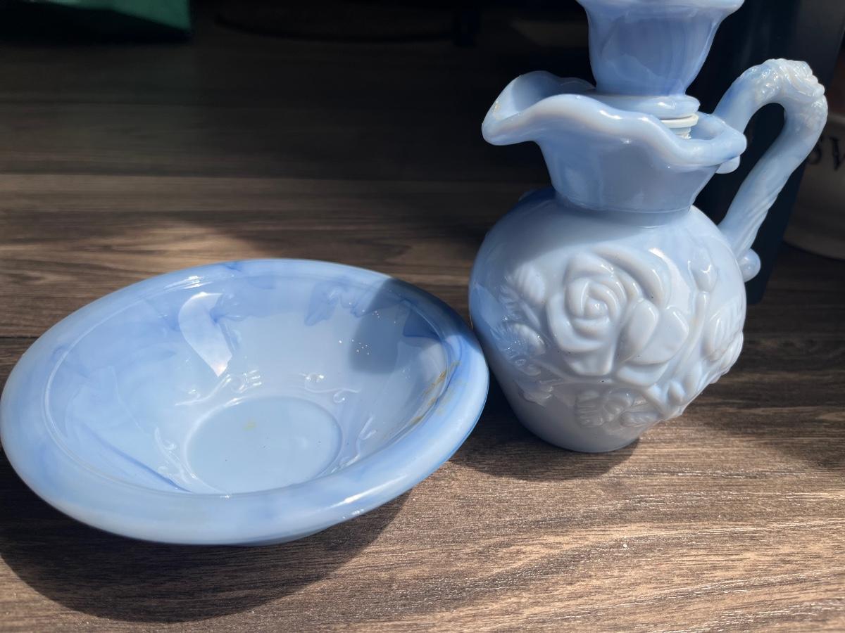 Vintage and Mid century brass, pyrex, stretched glass, lustroware, figurines, drink caddy, vintage glasses, tea sets, otigiri, Westmoreland, Fenton, Indiana glass