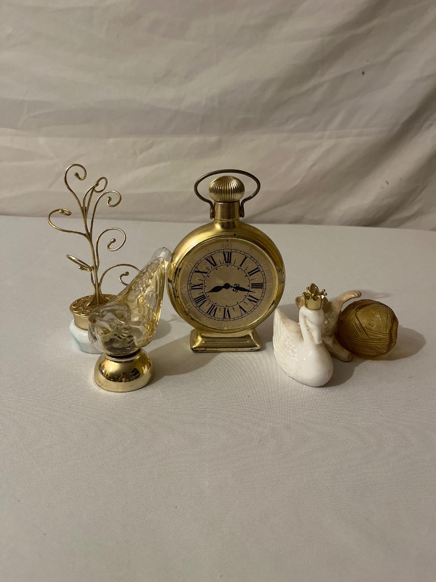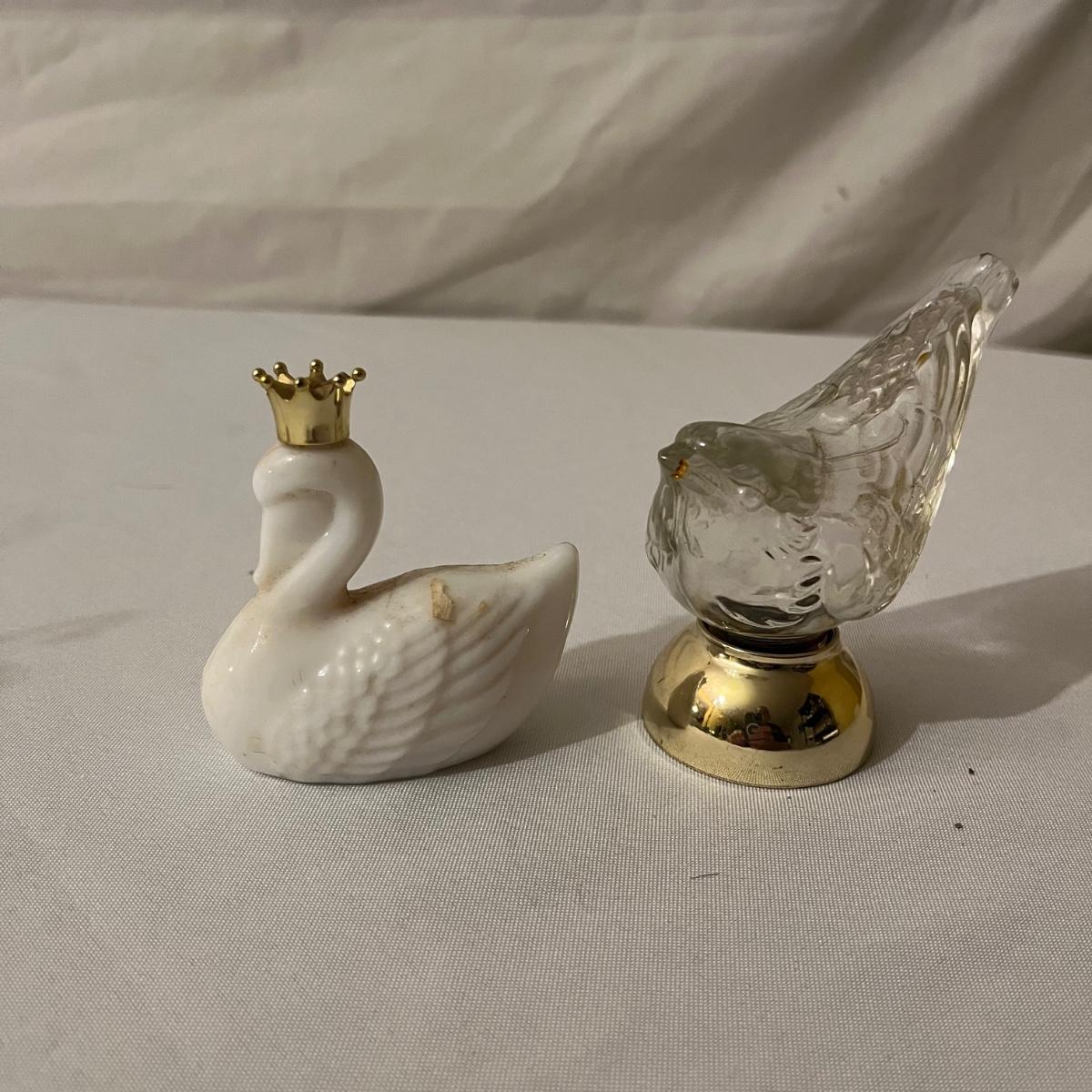 Lot contains a selection of Avon bottles in a variety of sizes shapes and designs. Clock bottle measures 1.5” x 4” x 6.5”. Most pieces are glass with a few plastic pieces.