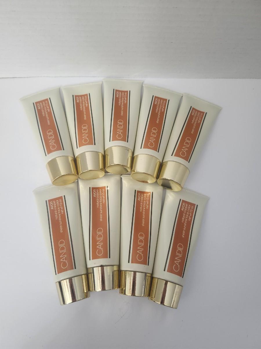 Nine piece lot of Vintage Avon Candid Natural Cologne Cream all NEW and FULL in .33 oz tubes. Classic scent packaged in ivory tubes with gold tone caps. Tubes show storage wear from age as seen in photos. Great bulk lot for collectors, resale, gifts, or nostalgic fragrance lovers.