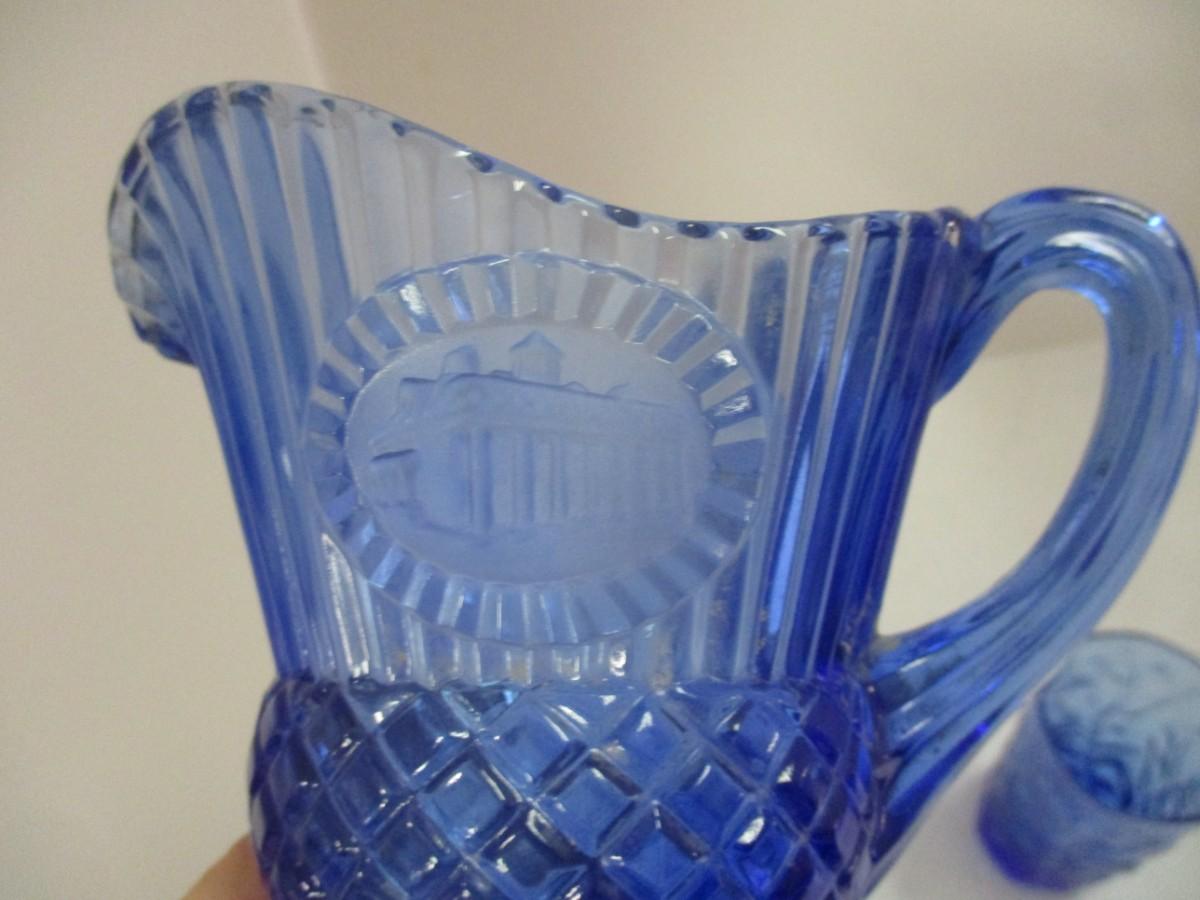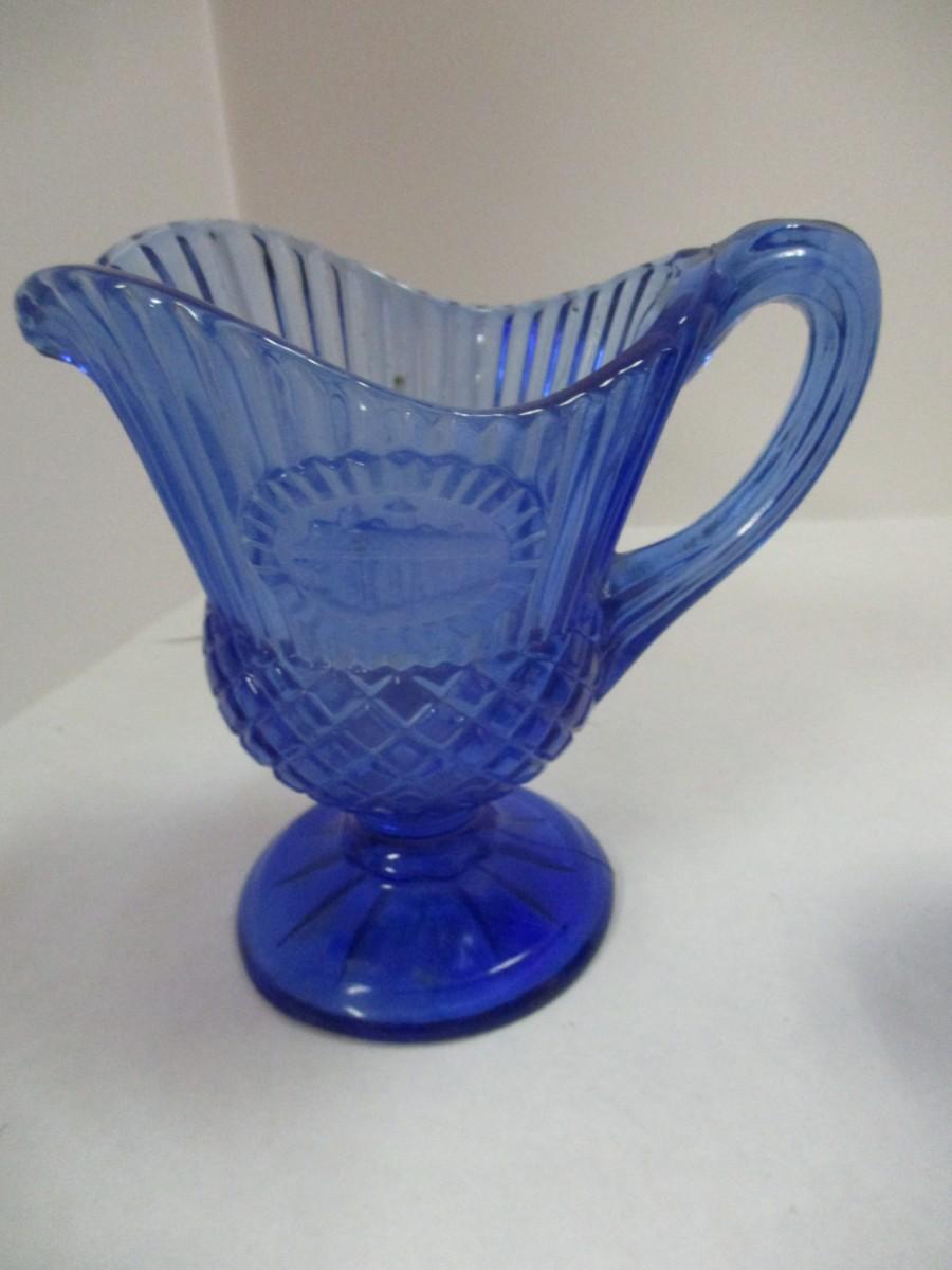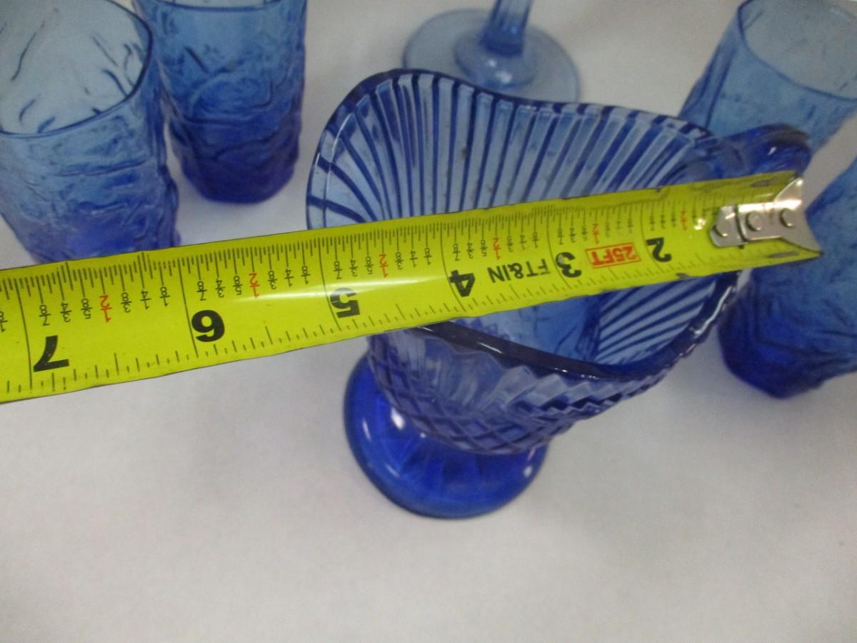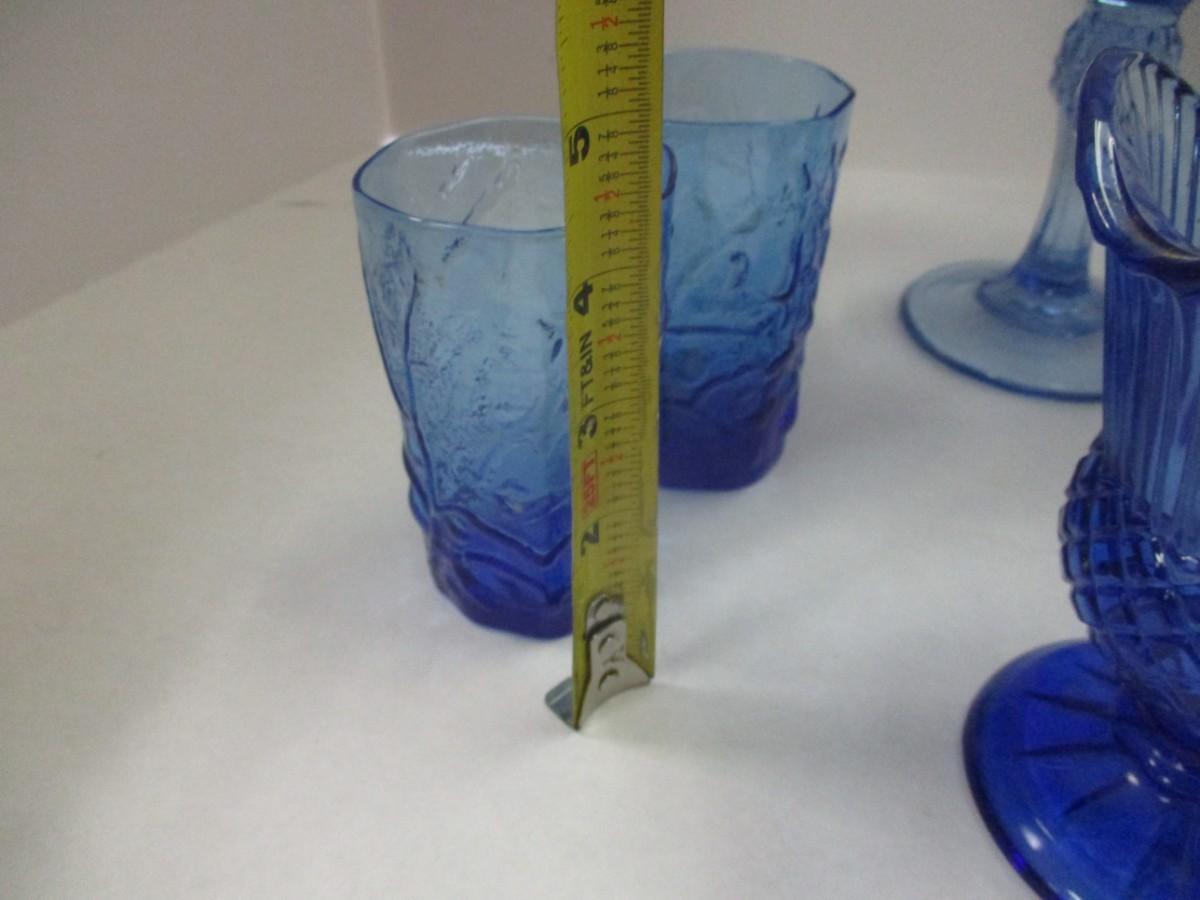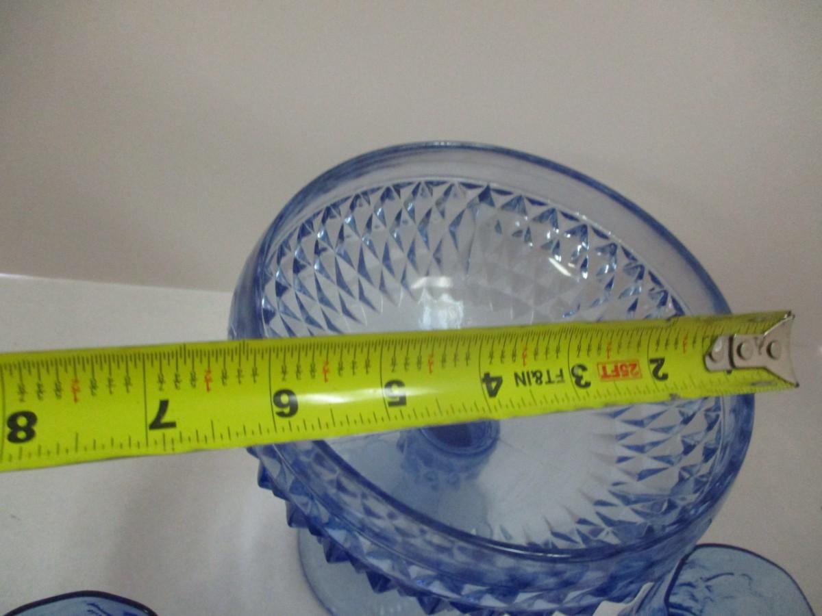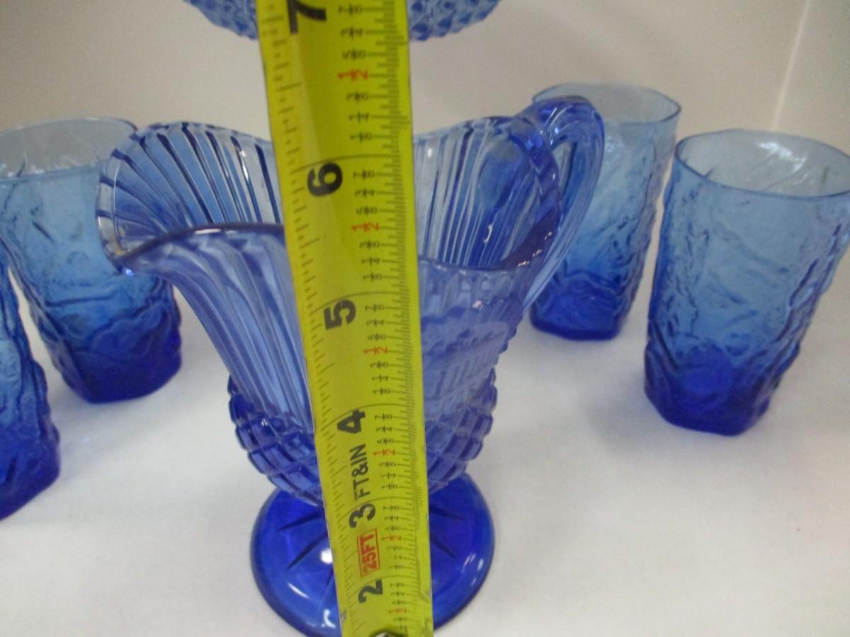 Vintage Avon Fostoria George/Martha Washington Cobalt Blue Pitcher - Diamond Point Regal Compote & Pedestal Bowl Indiana - The Seneca - Driftwood Delphine Blue Crinkle Tumblers Set Of 4