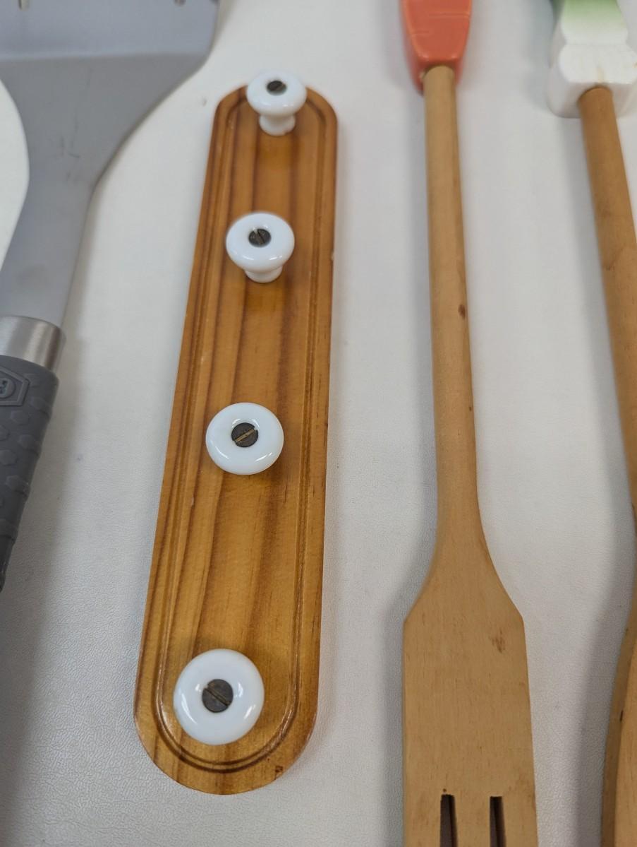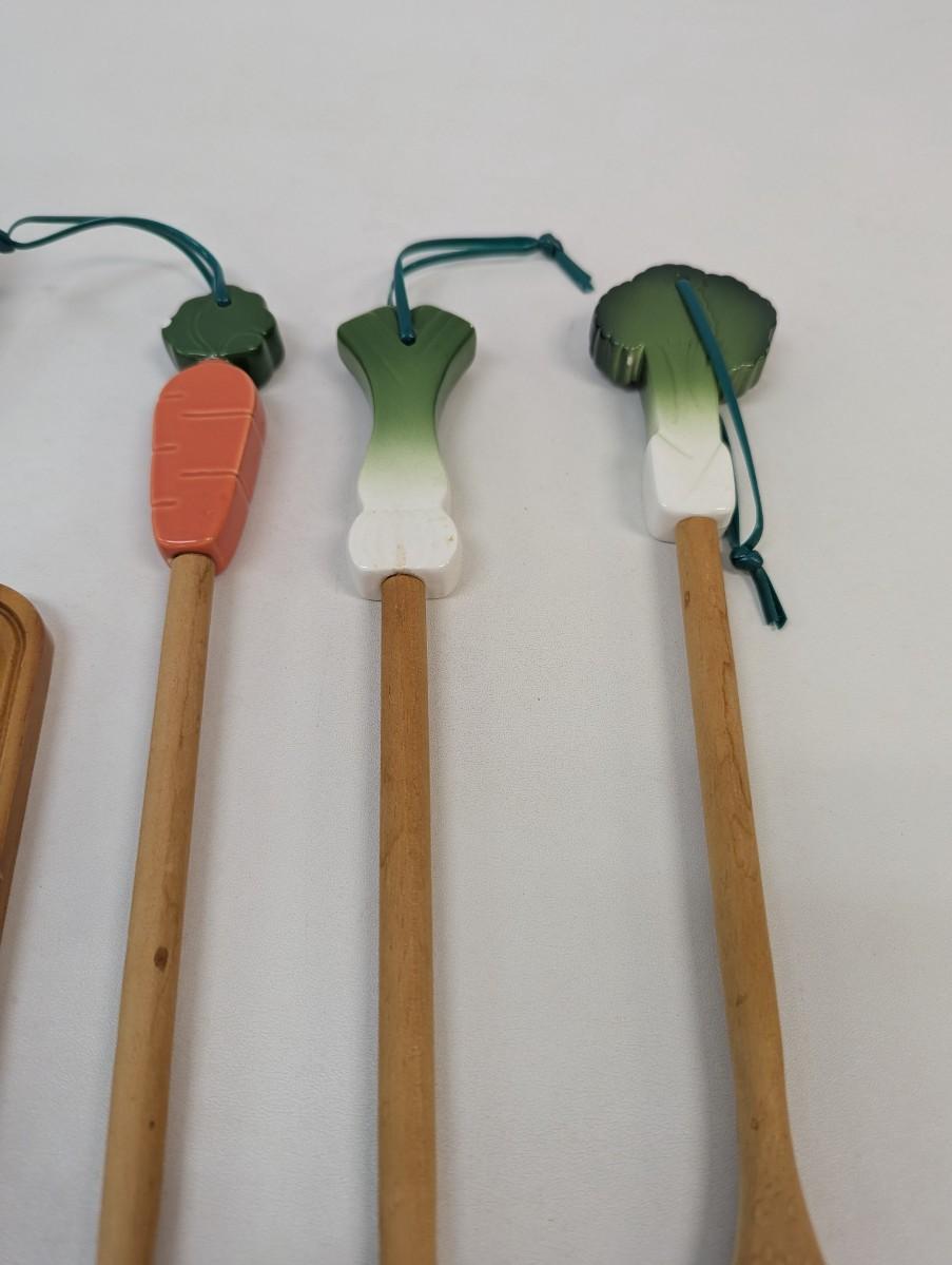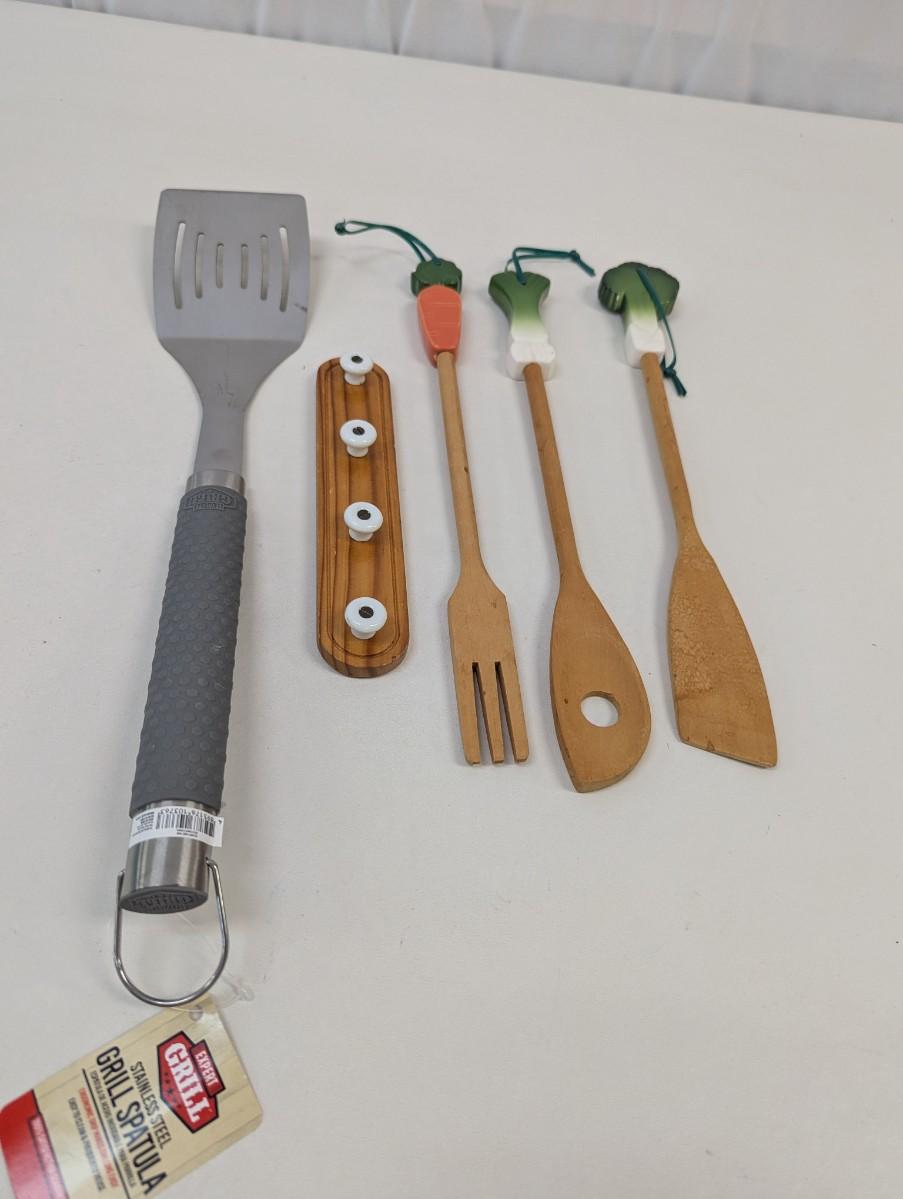 Vintage Avon Gallery Vegetable Wooden Utensils With Rack & Grill Spatula