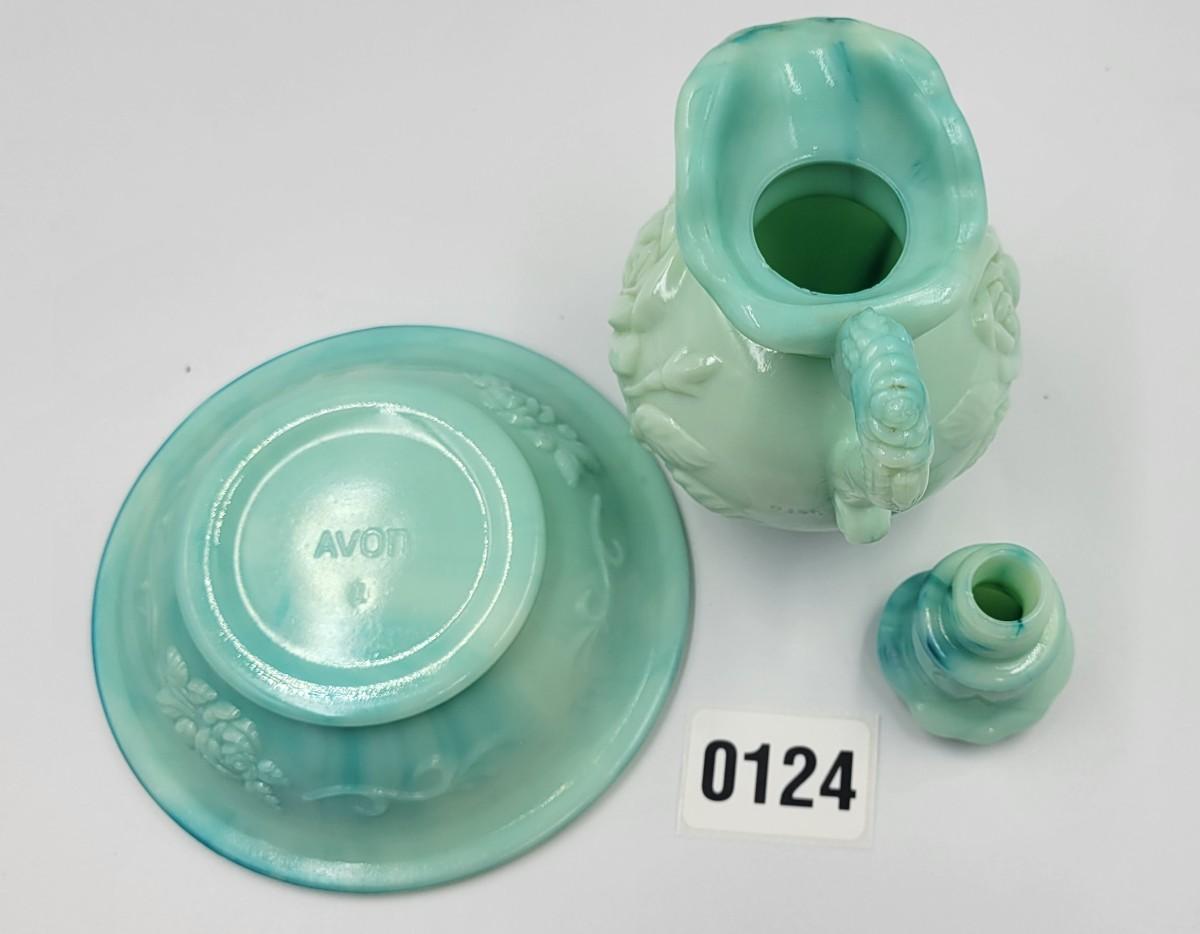 This is Avon glass. Size of this item is shown in the photos. It is in great condition and free of any visible defects.