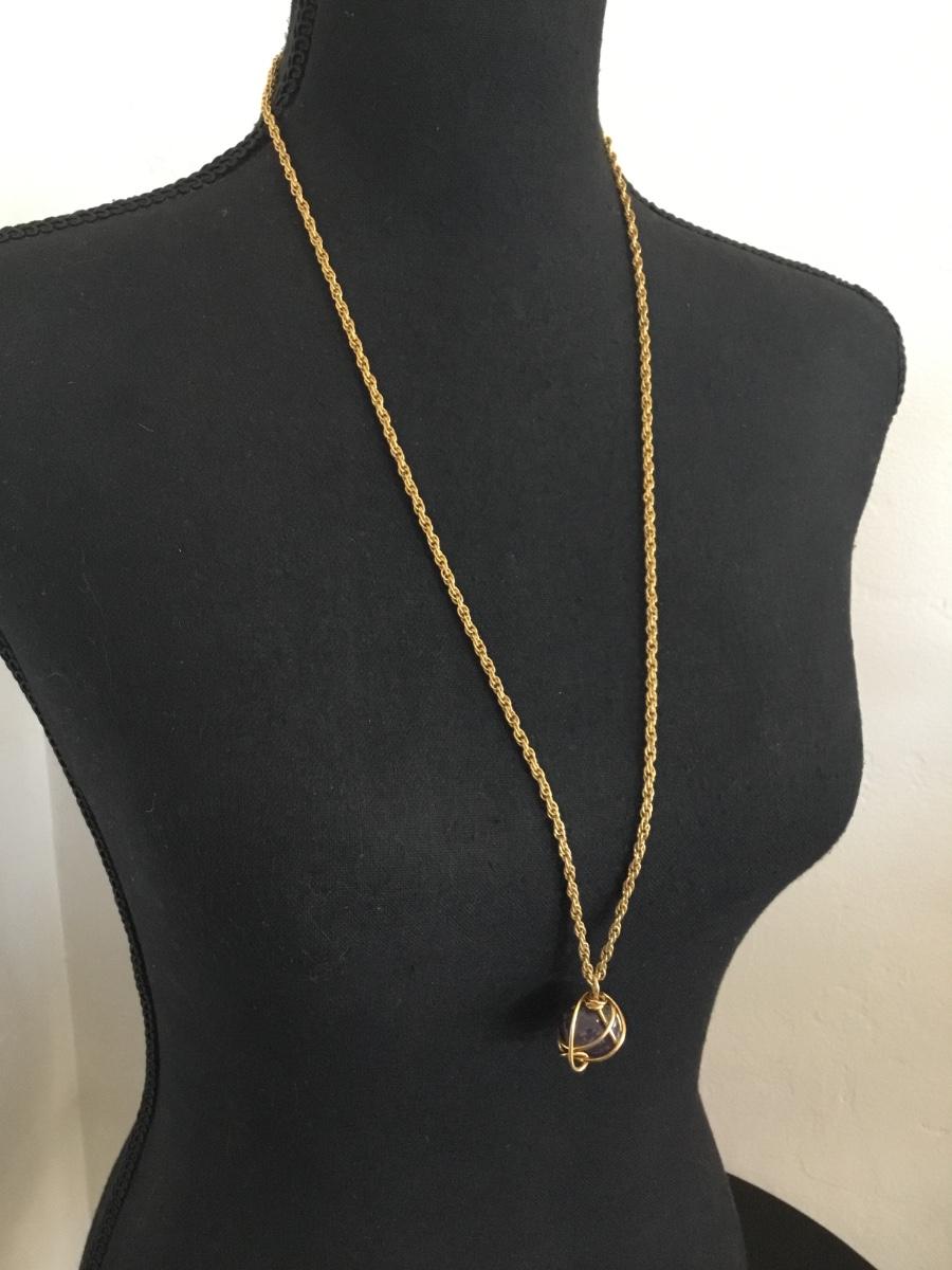 Vintage Avon, gold tone, chain necklace with amethyst stone wire, wrapped pendant
