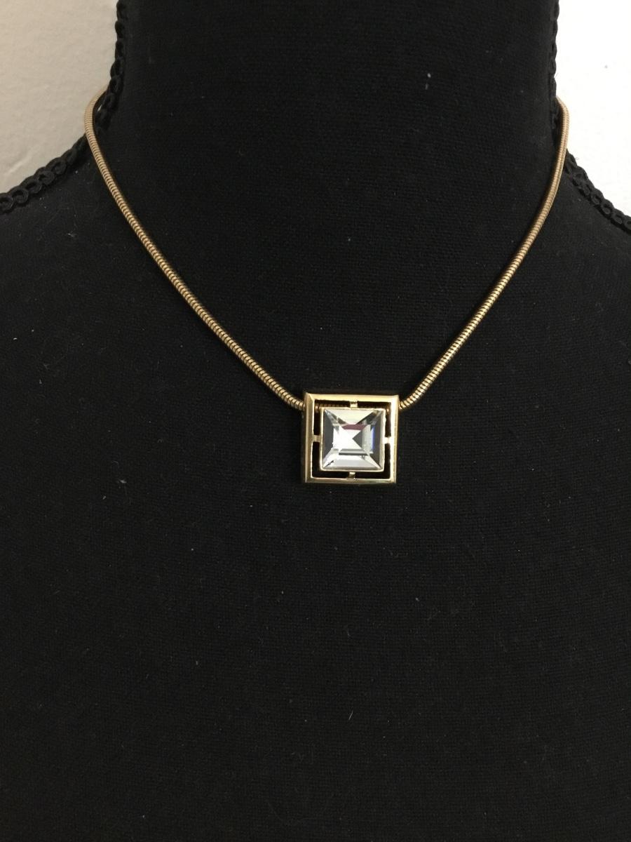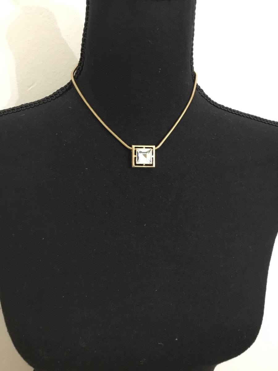 Vintage Avon gold tone & Square crystal pendant, fashion necklace