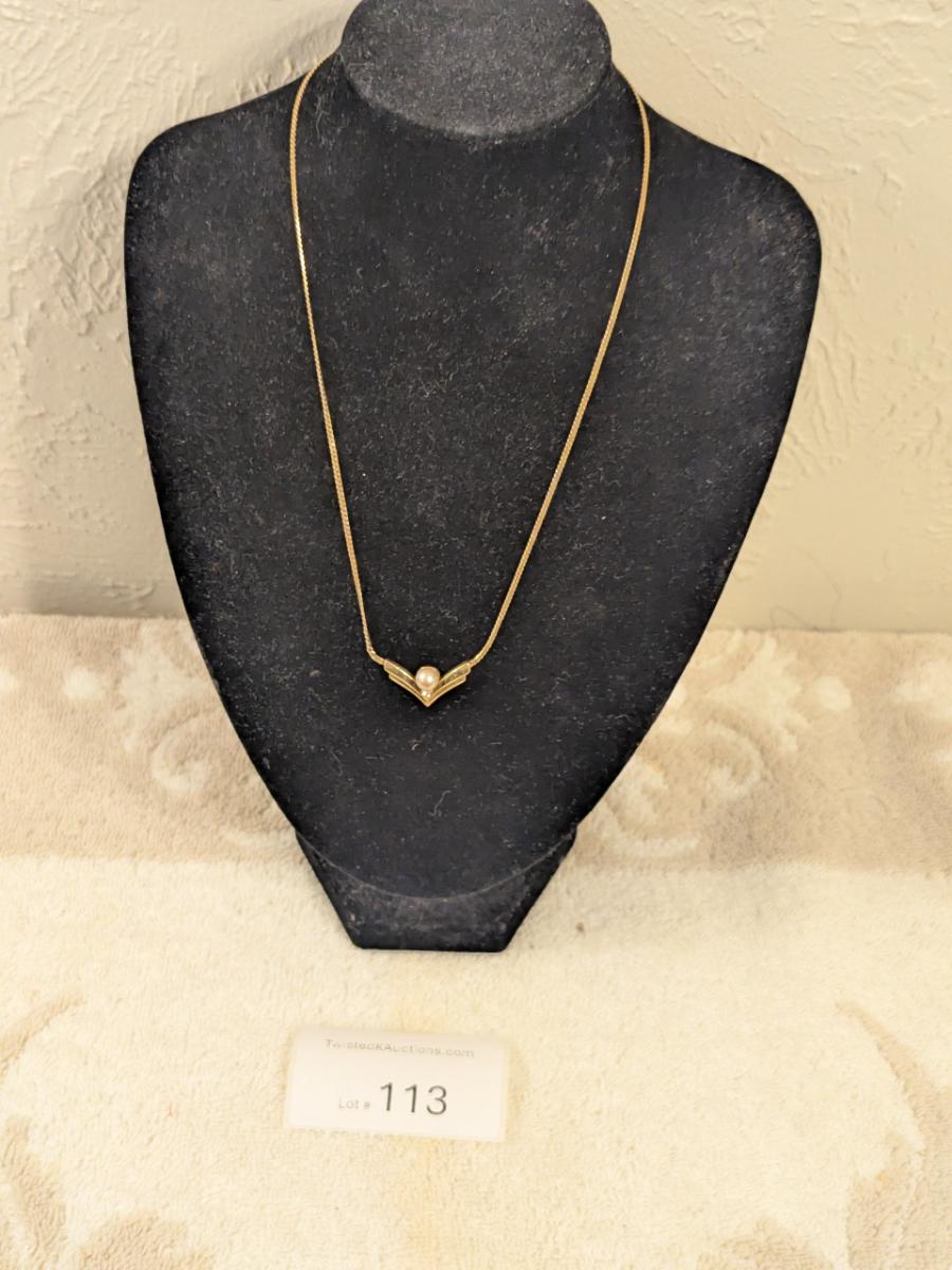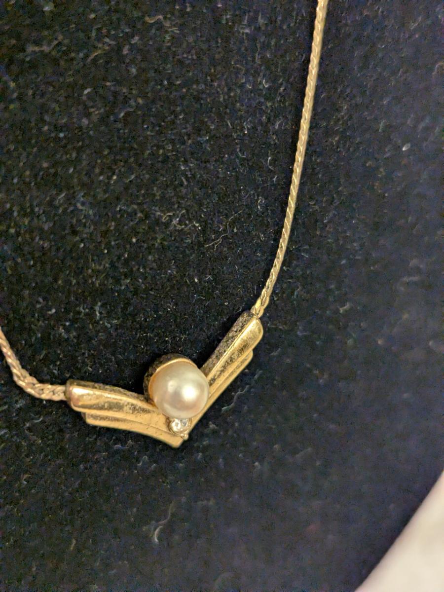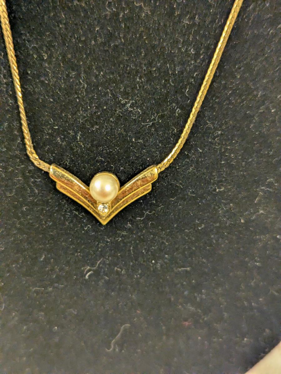vintage Avon gold-tone necklace with a V-shaped pendant